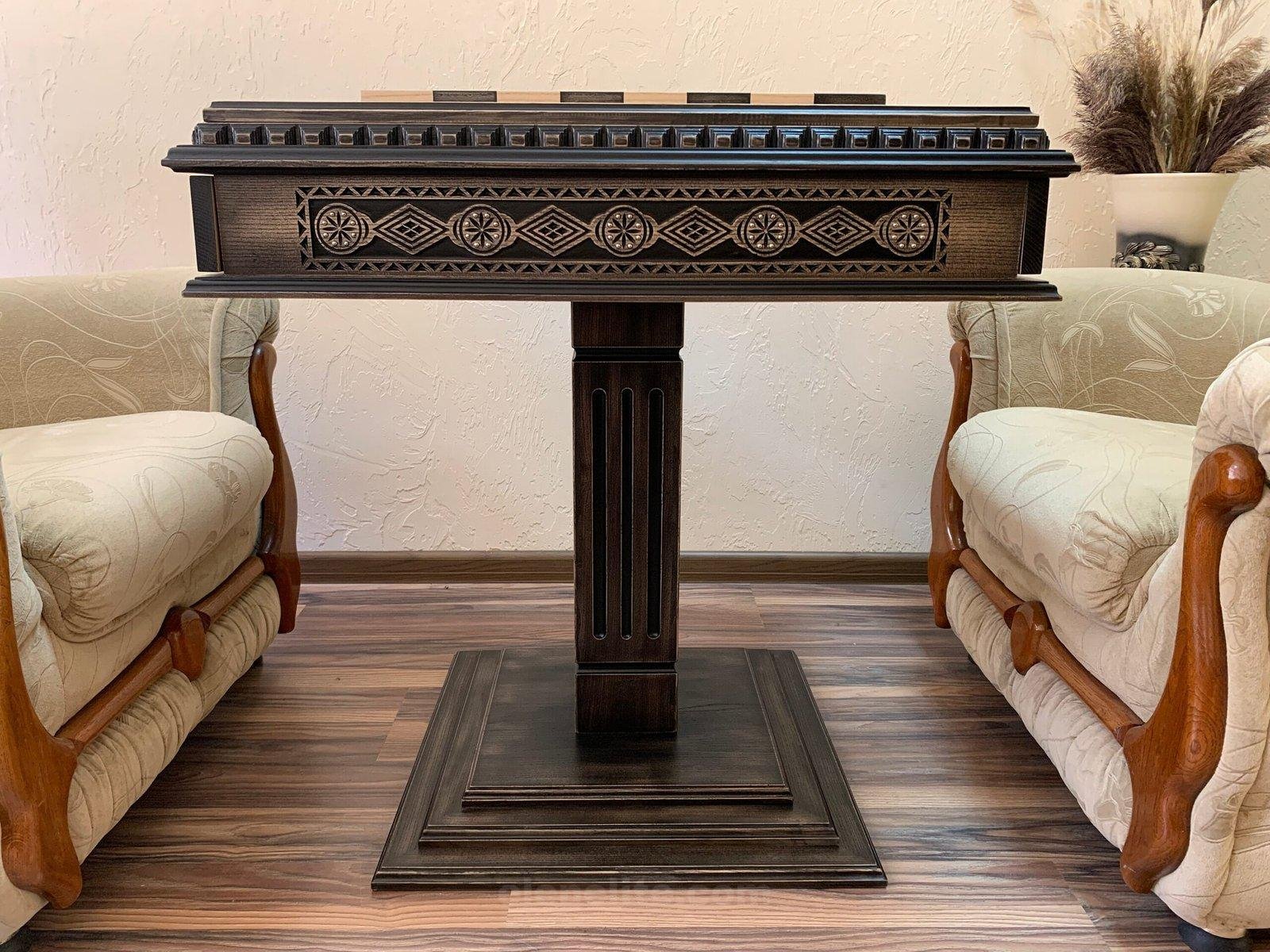 Wooden Chess Table “Bright Victory” with 2 Drawers, decorated with beads