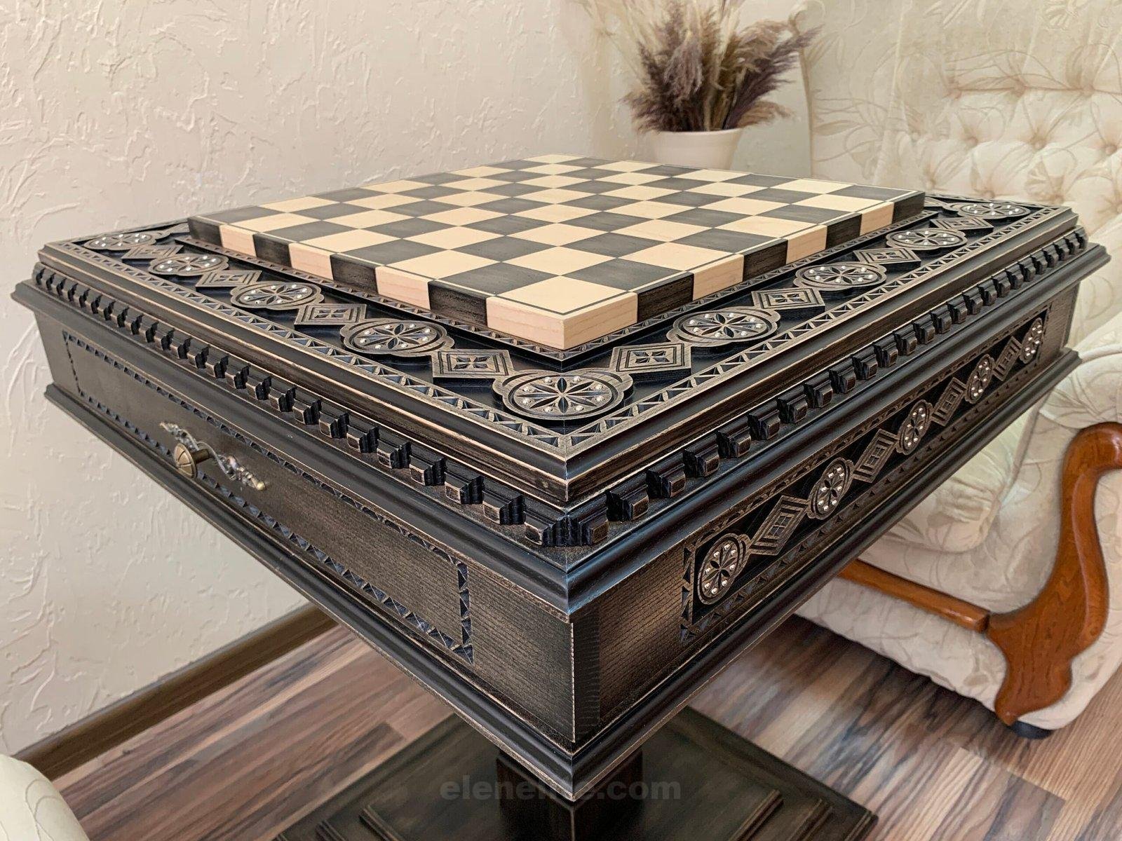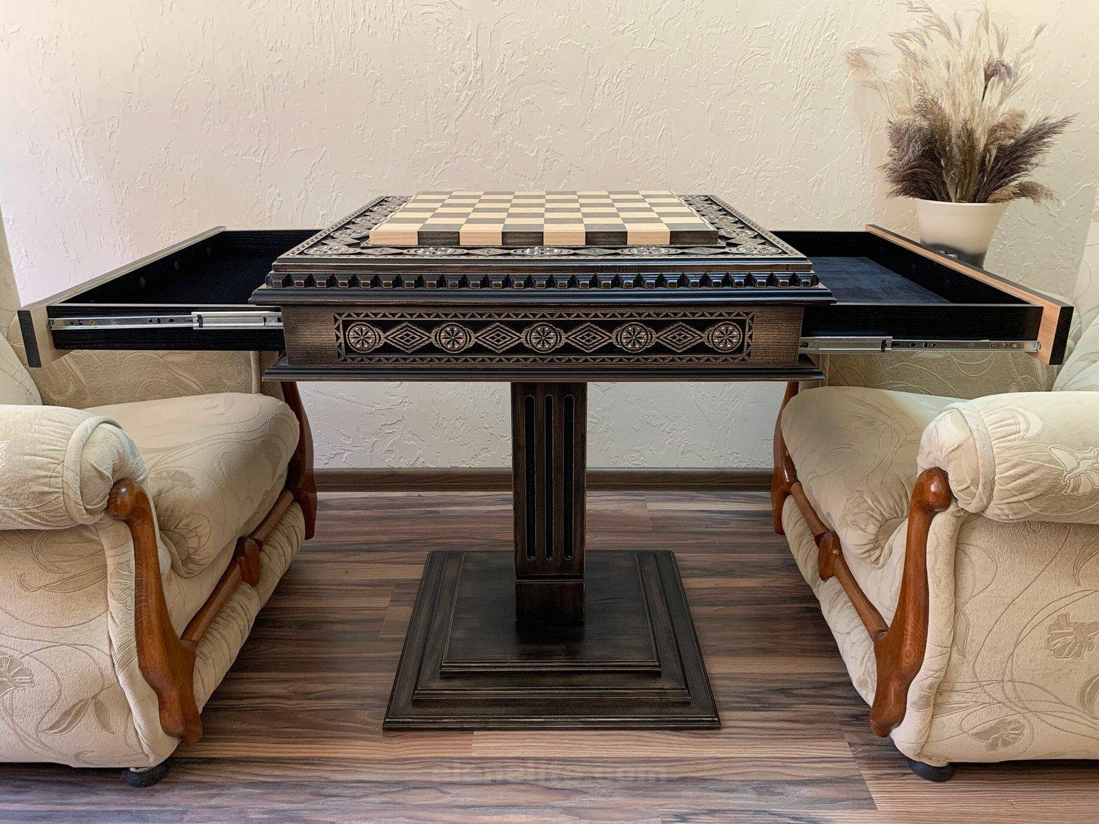 488 reviews for Wooden Chess Table “Bright Victory” with 2 Drawers, decorated with beads