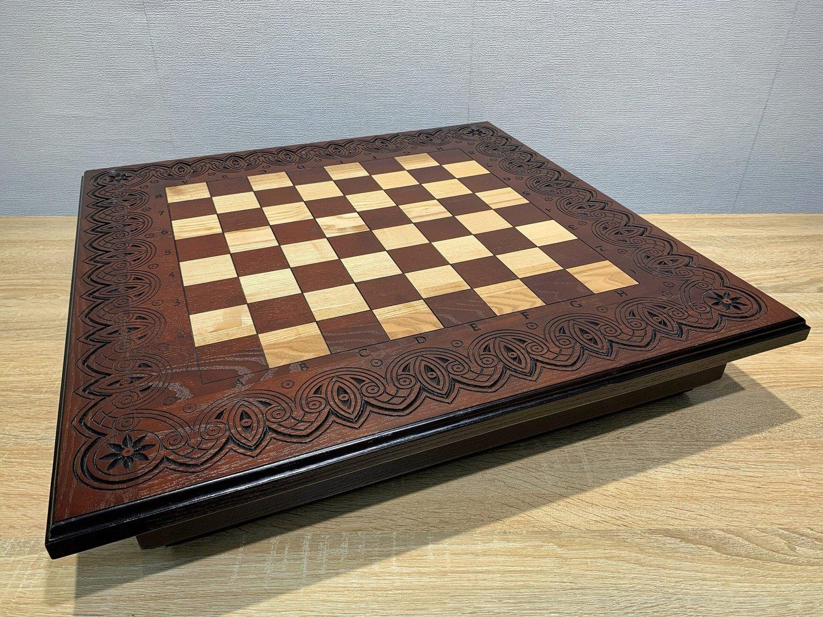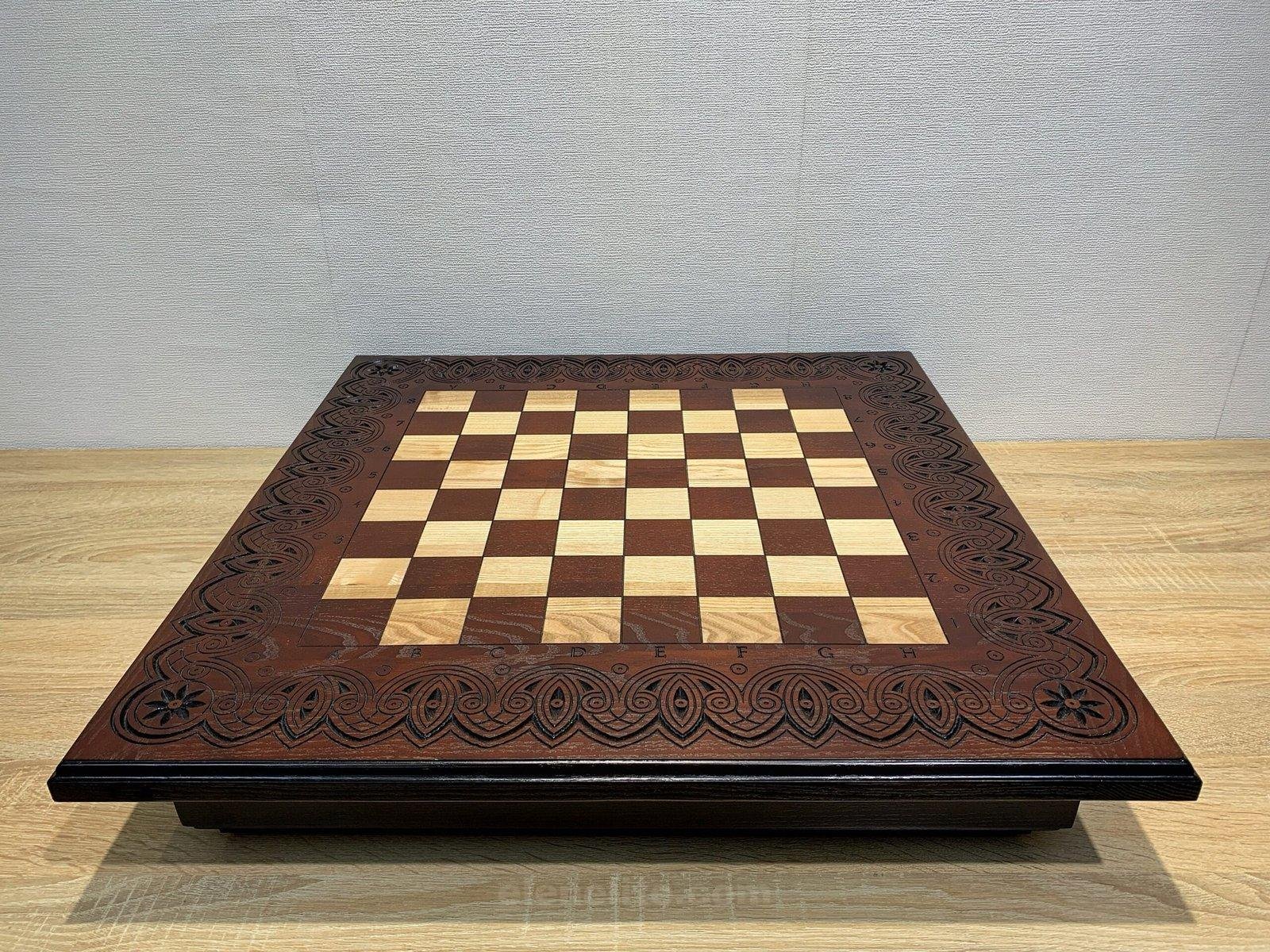 Chess board “Black & White” Ash wood, Handmade, Wood Carving