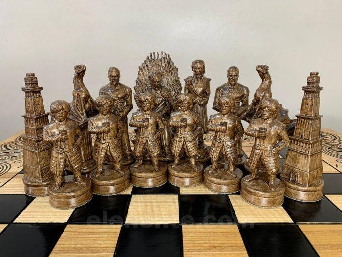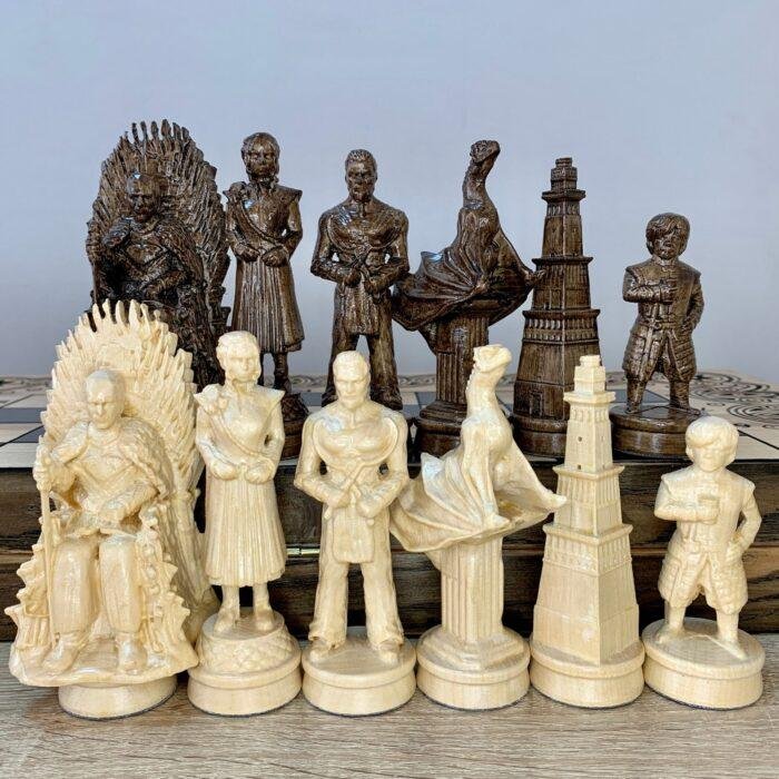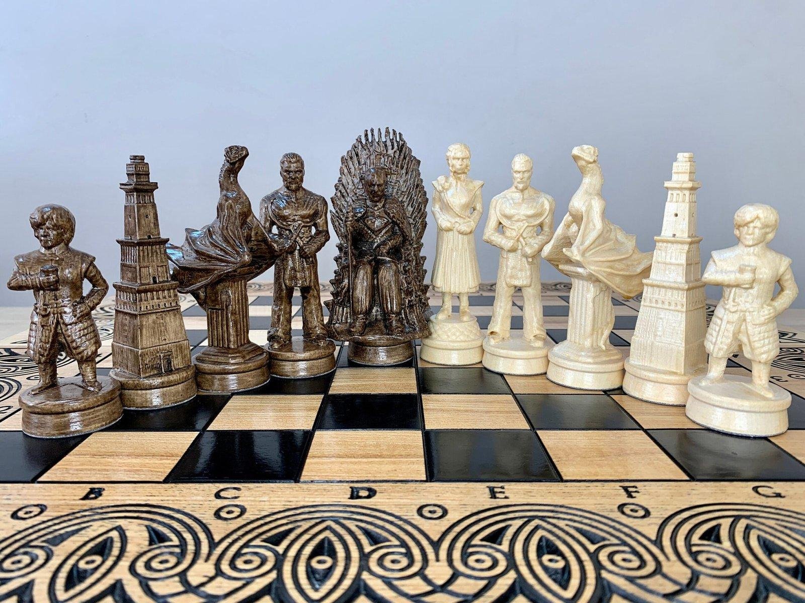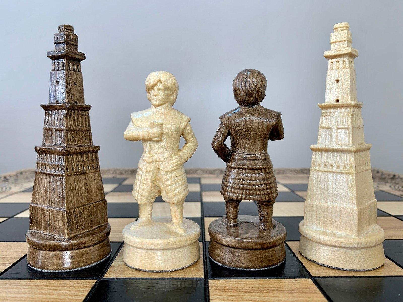 Wooden Chess pieces "Battle of Thrones" WITHOUT BOARD , handmade carving, solid maple wood, Annyversary Birthday Wooden Gift