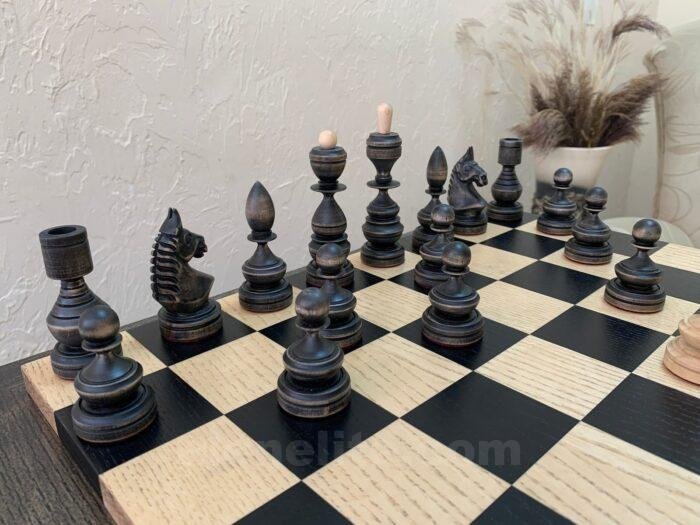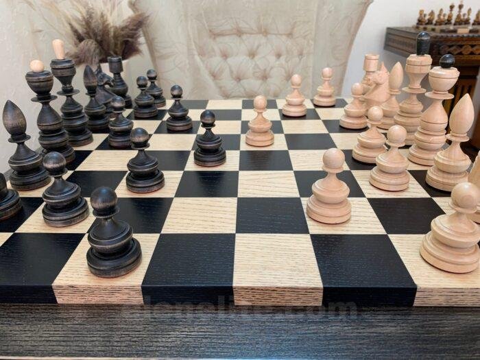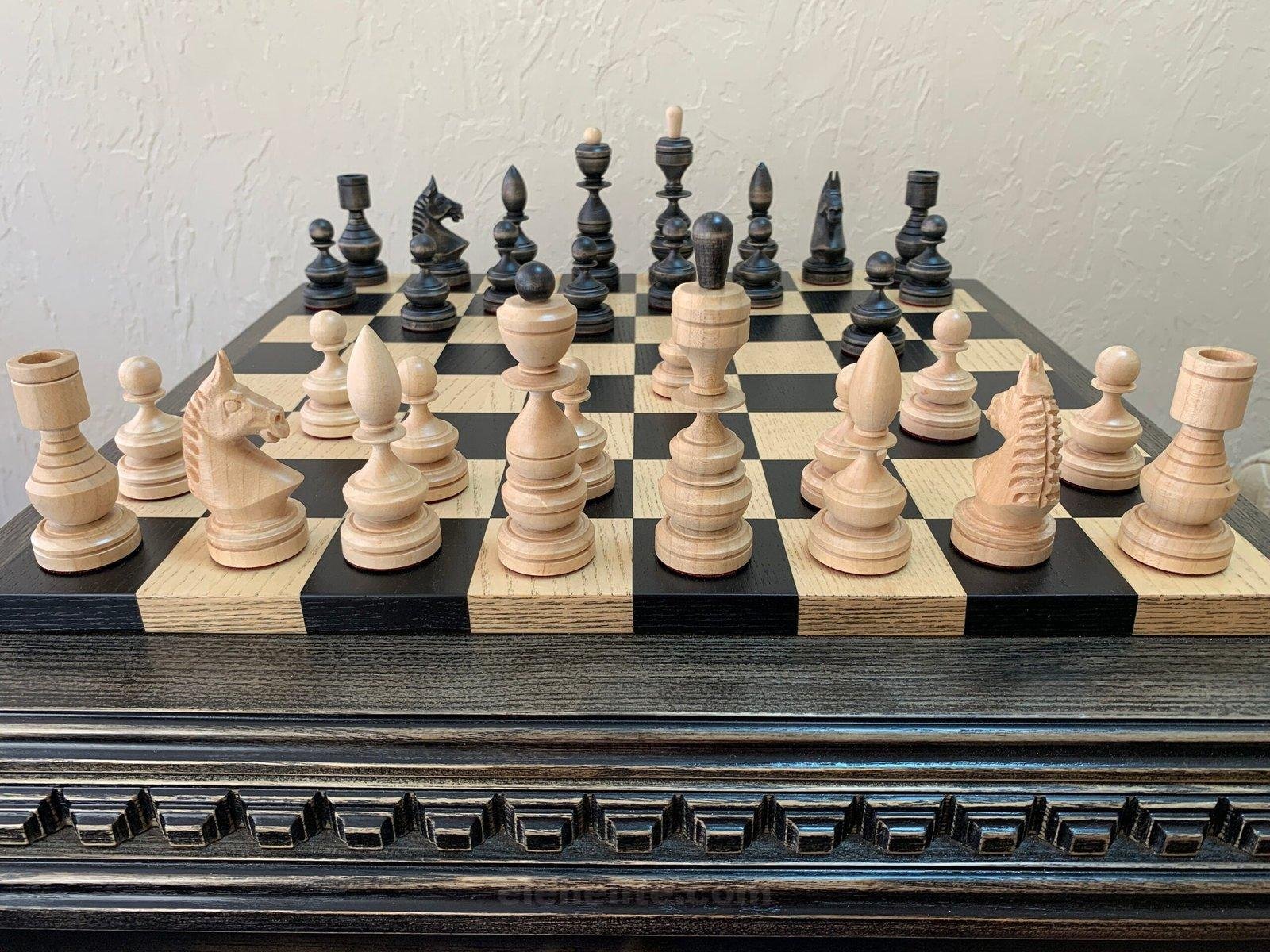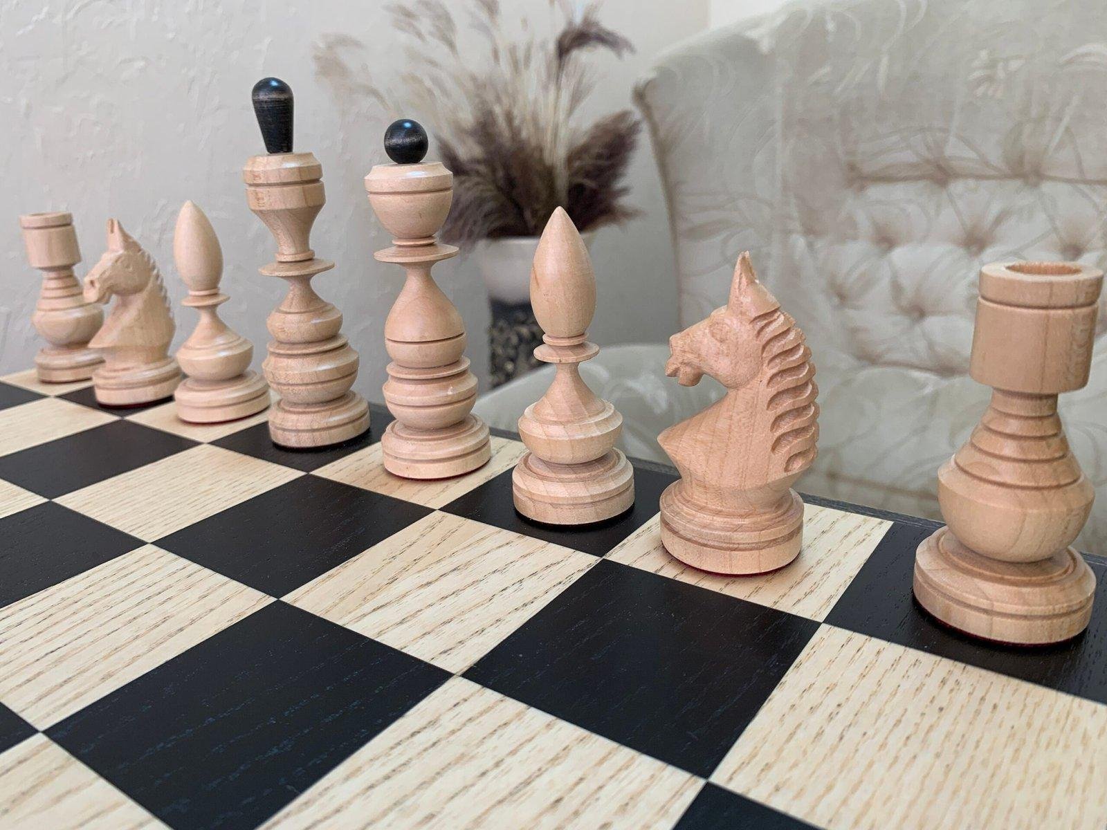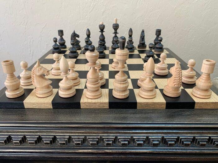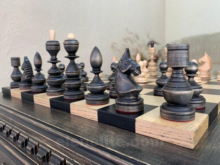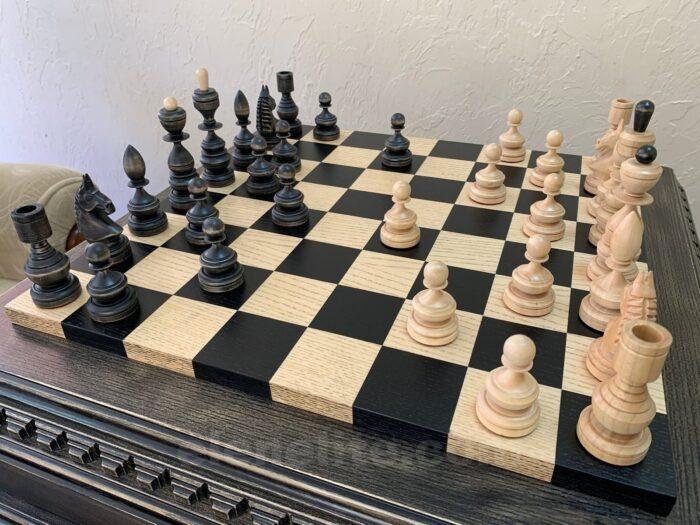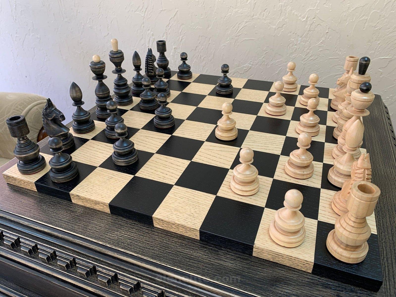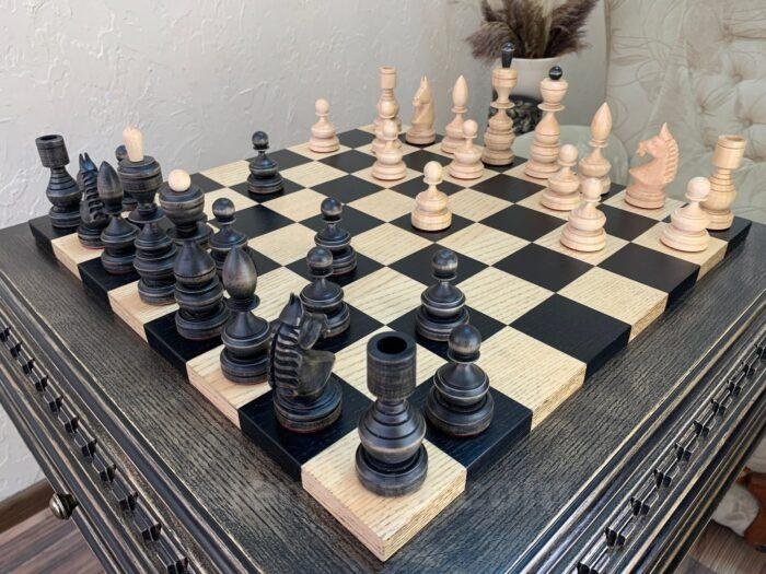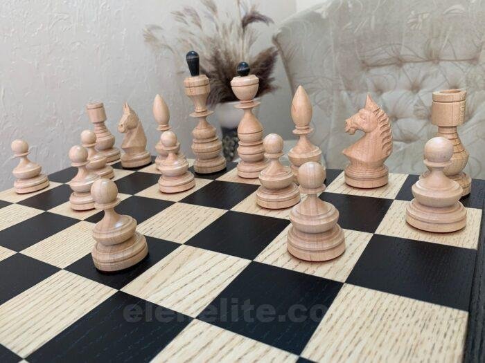 Chess board “Black & White” Ash wood, Handmade, Wood Carving