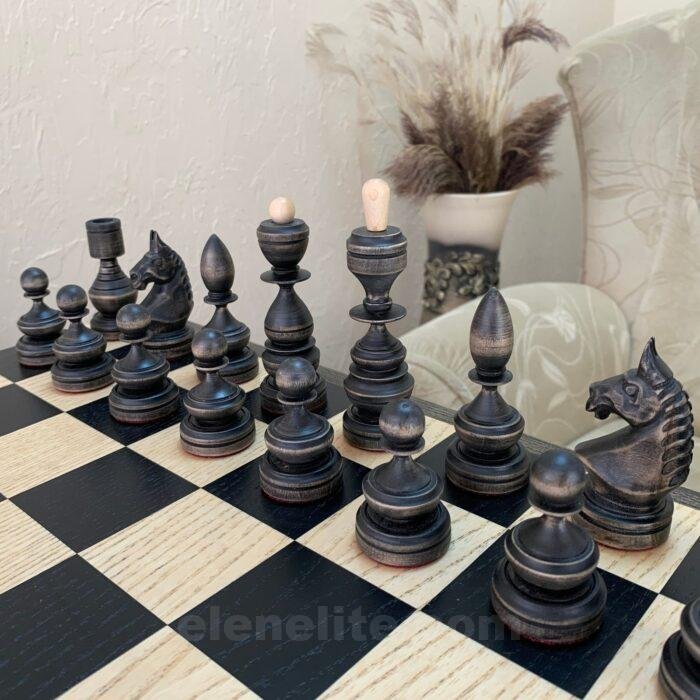 Wooden Chess pieces "Armed Forces of Ukraine” + “Cossacks" Black patina | Beige color