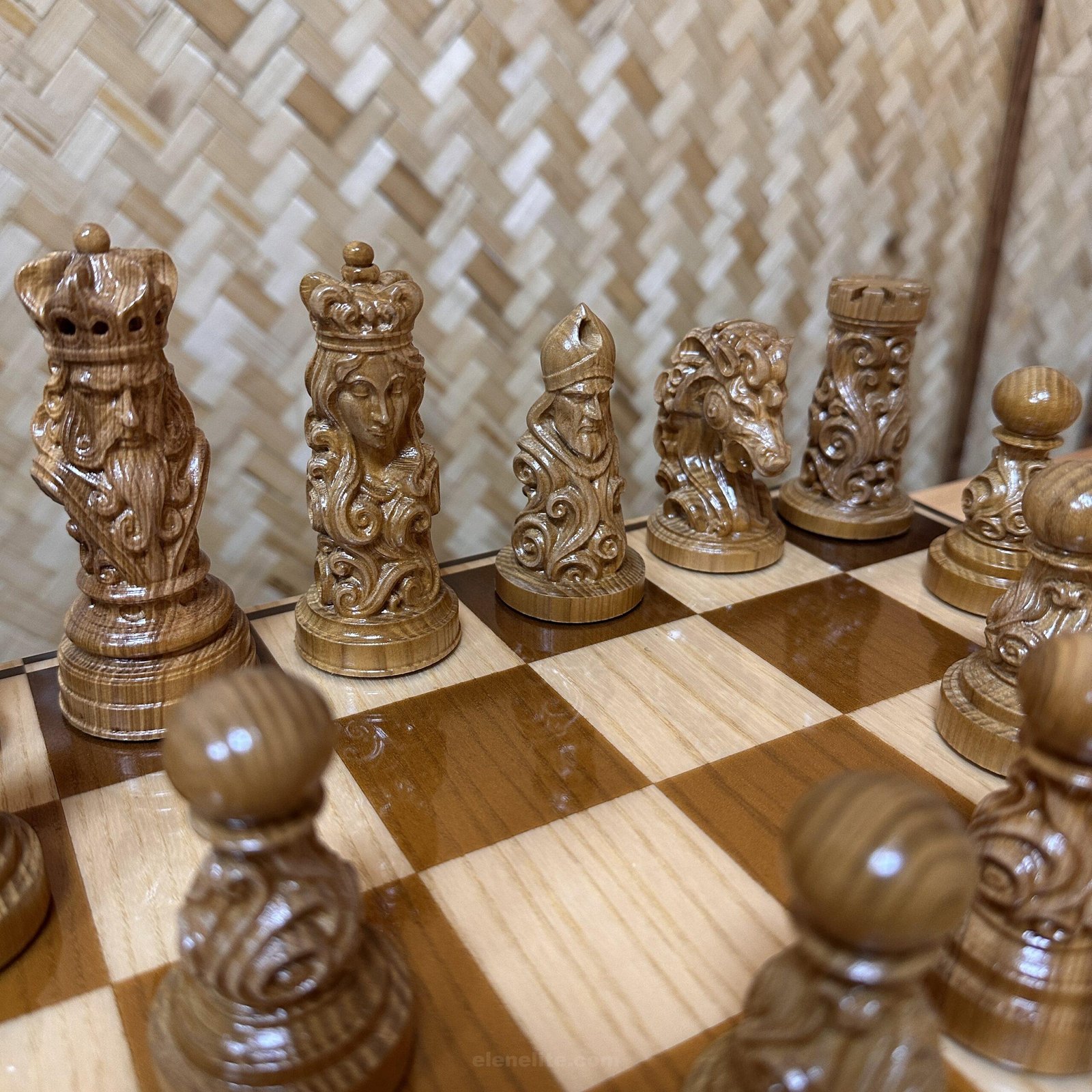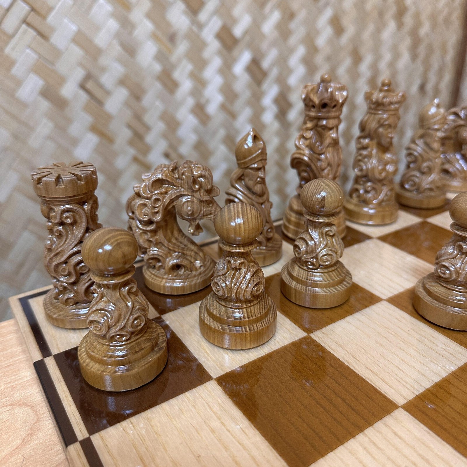 489 reviews for Wooden Chess pieces “Royal Filigree” slavic style with ornamental detailing