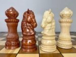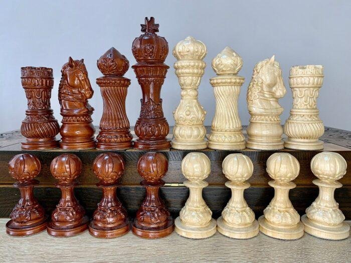 Handcrafted chess pieces made of natural maple. Classic design with fine carving, made of premium material – for connoisseurs of aesthetics and quality.
