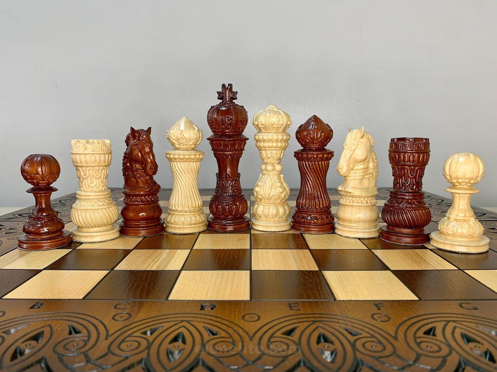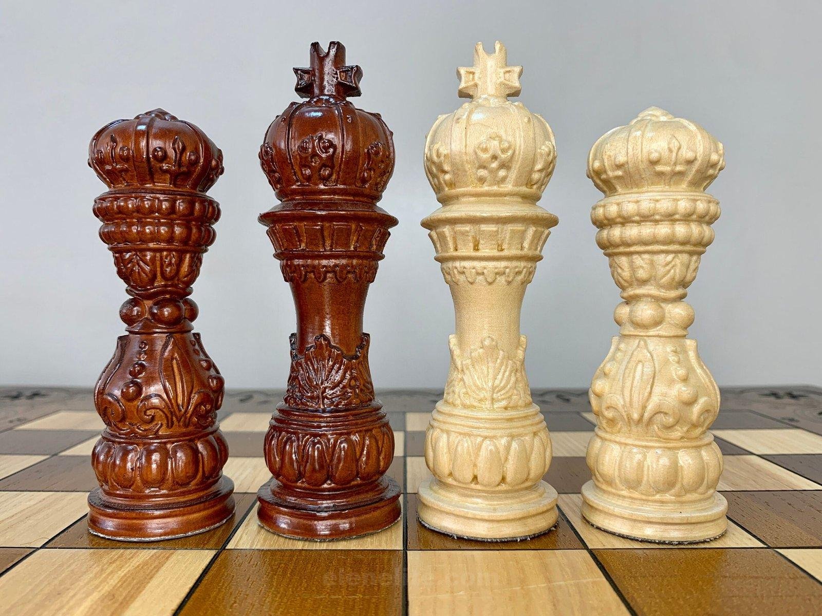 Wooden Chess Pieces "Elegant Classic" Dark Brown | Beige color
