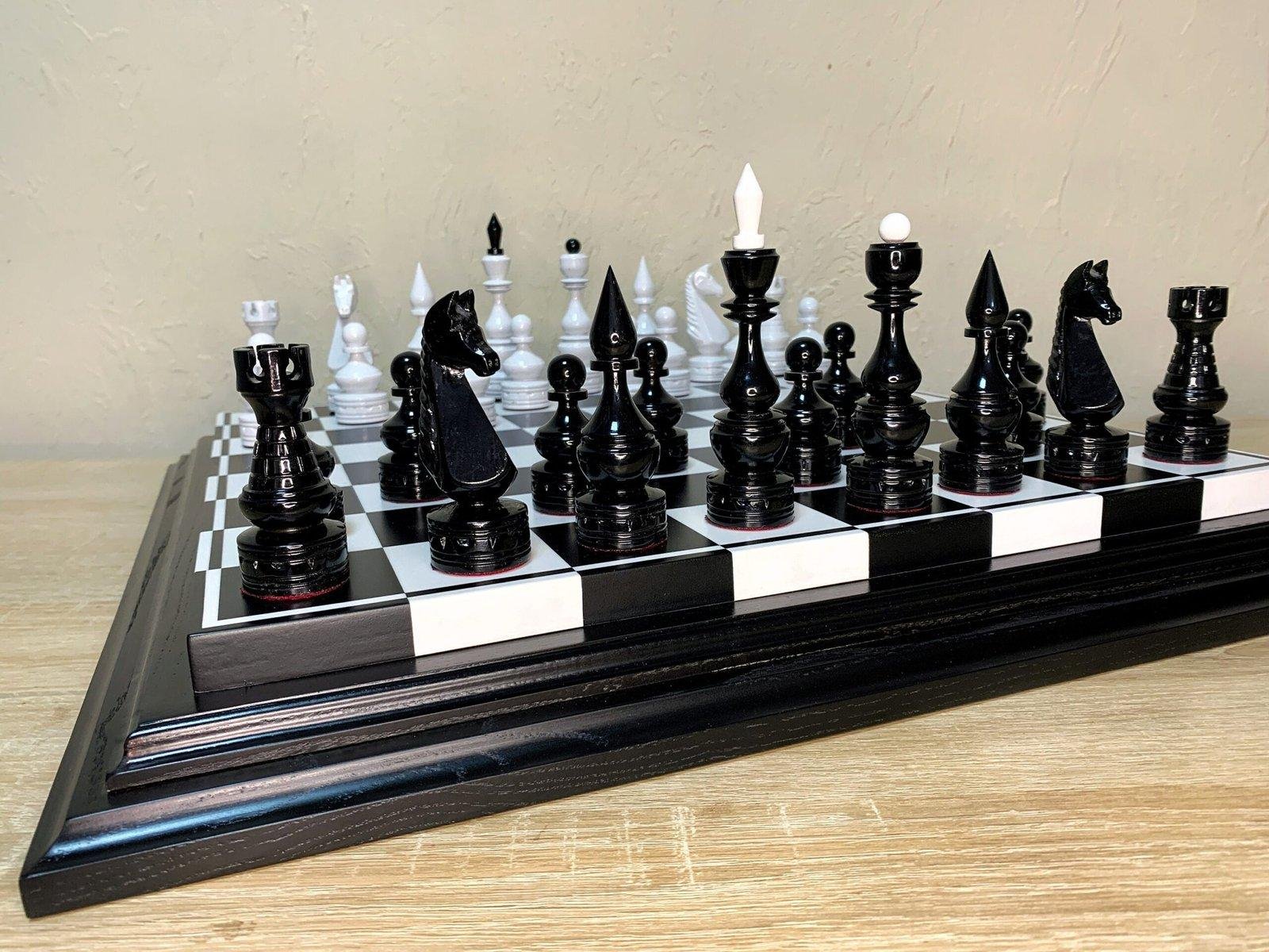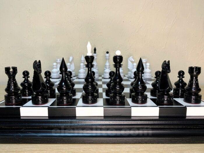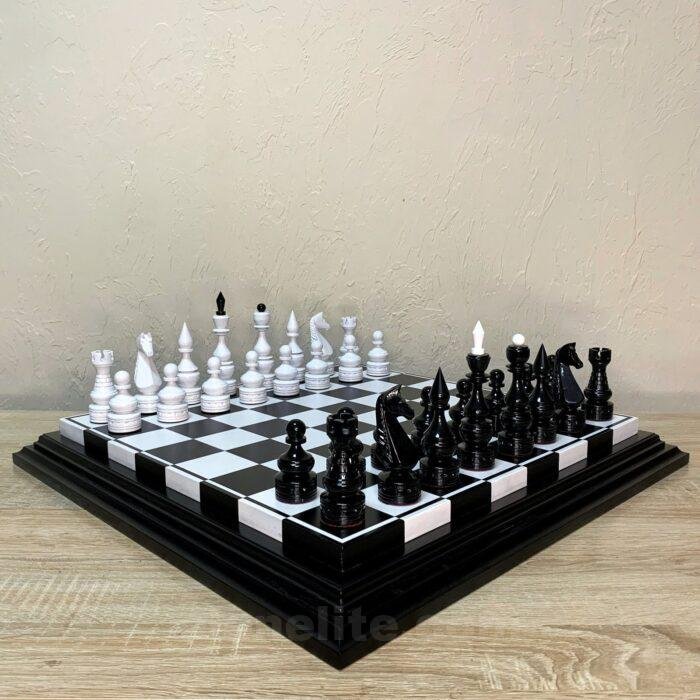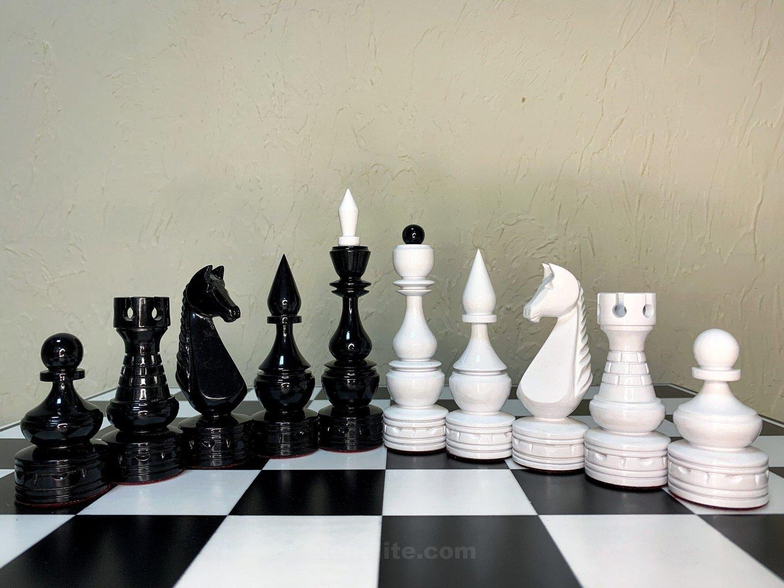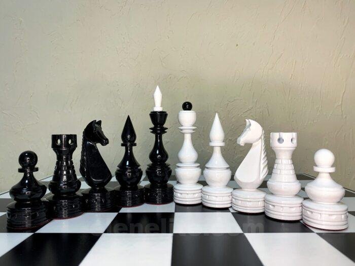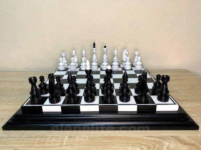 About the Chess Set: Chess board “Black & White” + glossy pieces “Elite”