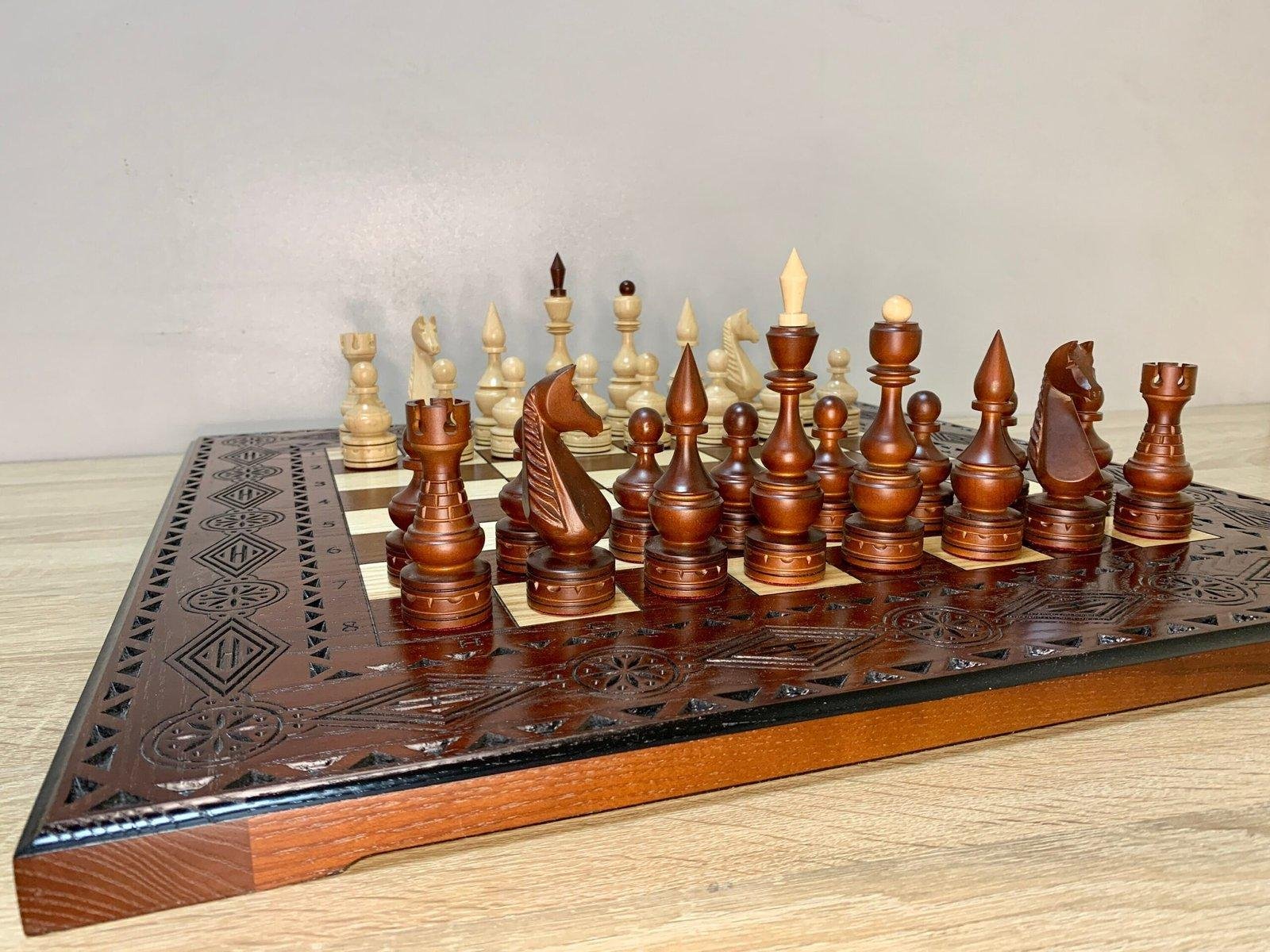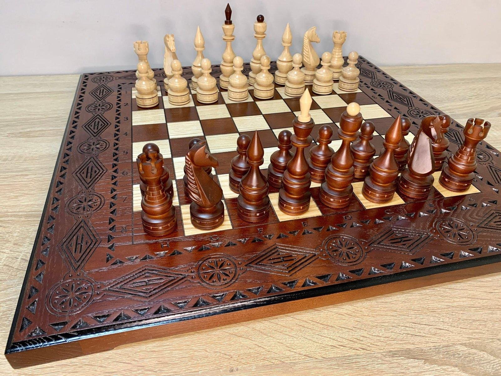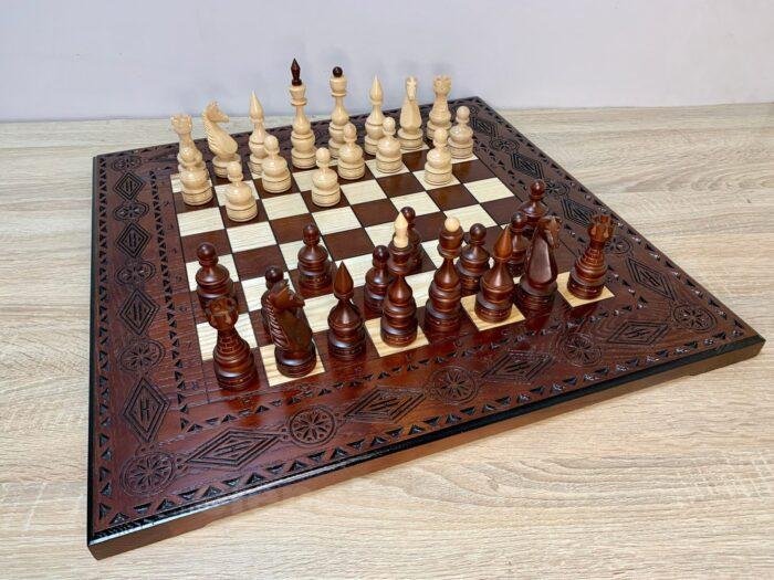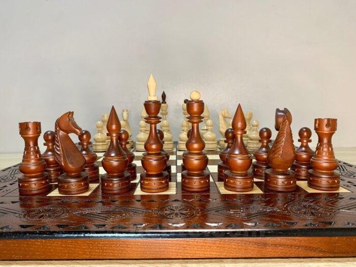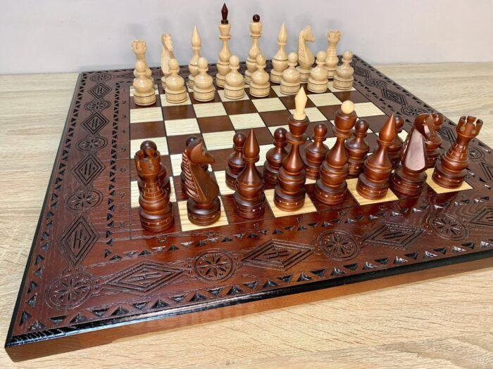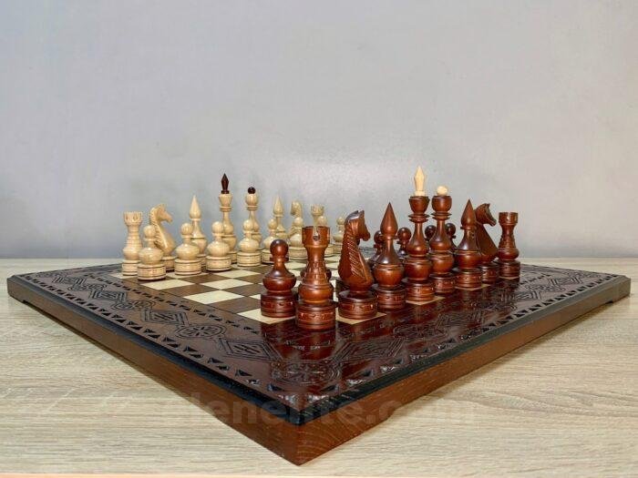 DESIGN: the chess board is decorated with carvings; the chess pieces are made in classic design; exclusively designed by our “Elen Elite” craftsmen.