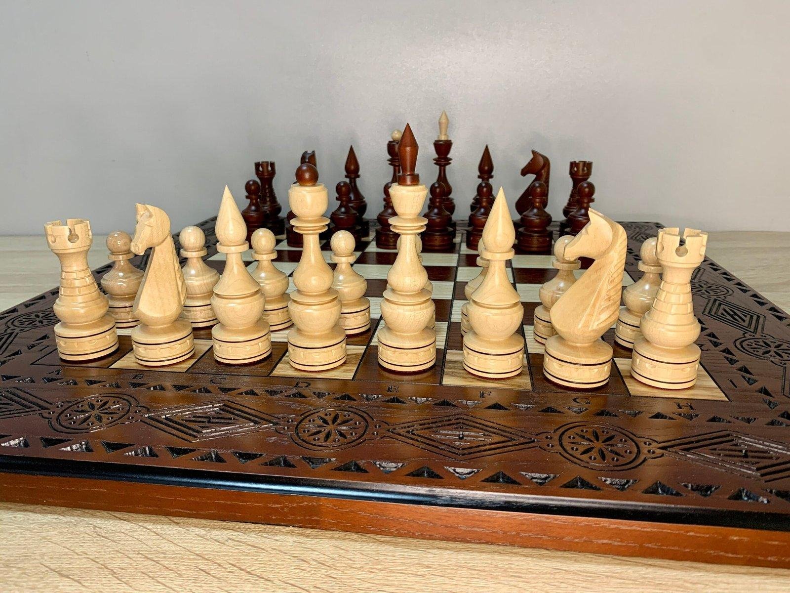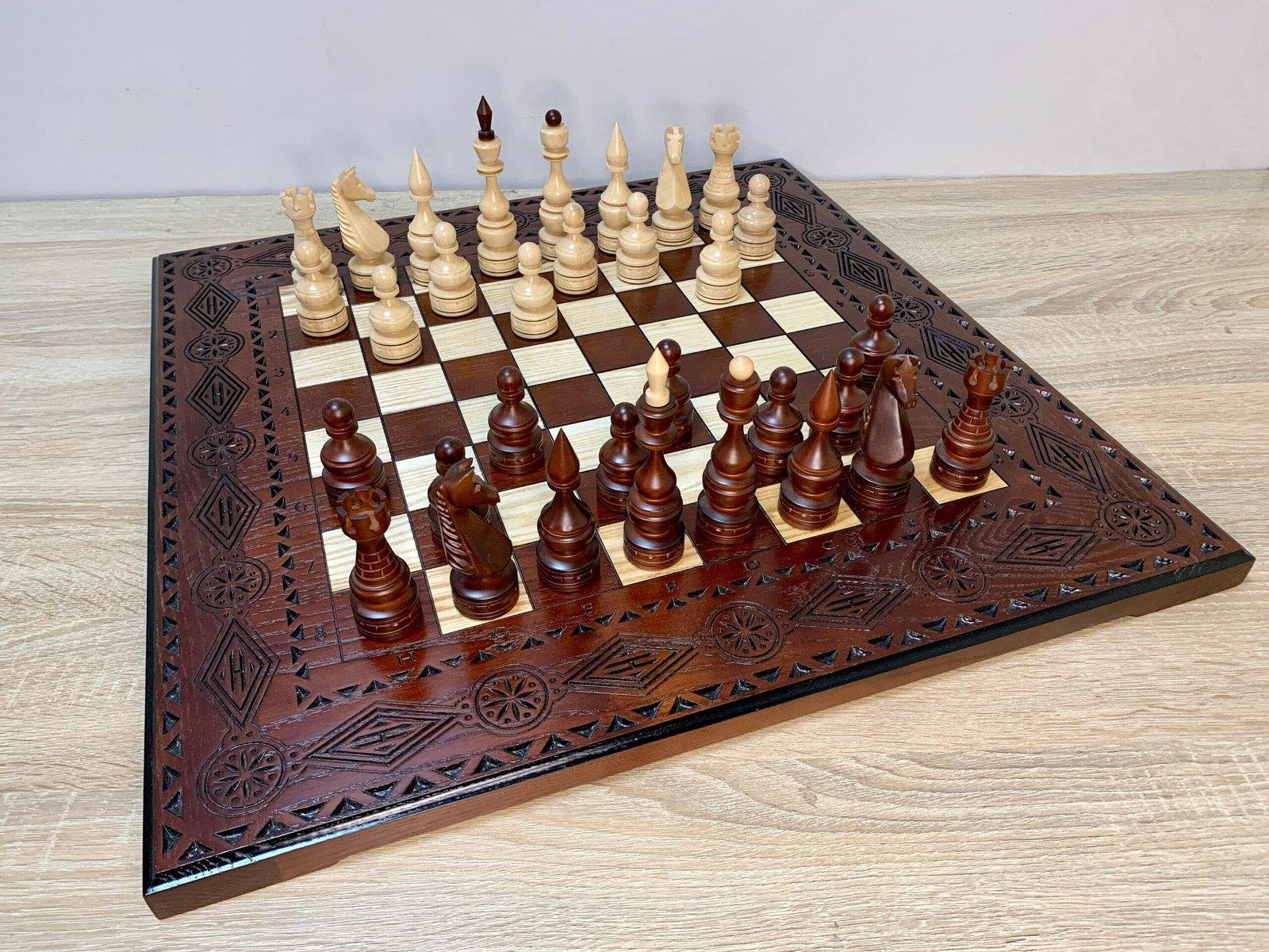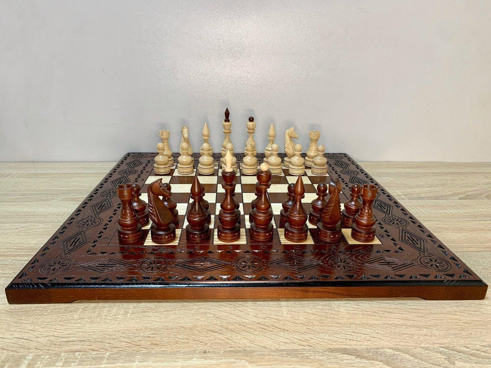 DESIGN: the chess board is decorated with carvings; the chess pieces are made in classic design; exclusively designed by our “Elen Elite” craftsmen.