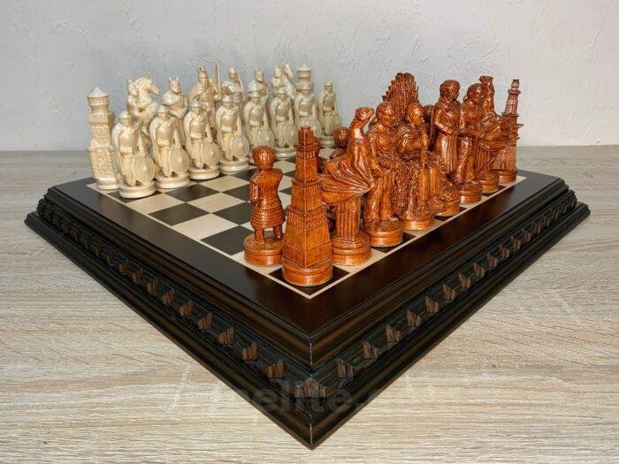 DESIGN: the chess board is made in a classic design; 16 chess pieces – characters from the series “Game of Thrones” and 16 pieces – Knights; exclusively designed by our “Elen Elite” craftsmen.