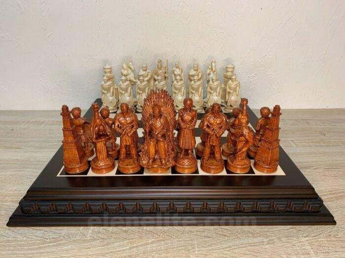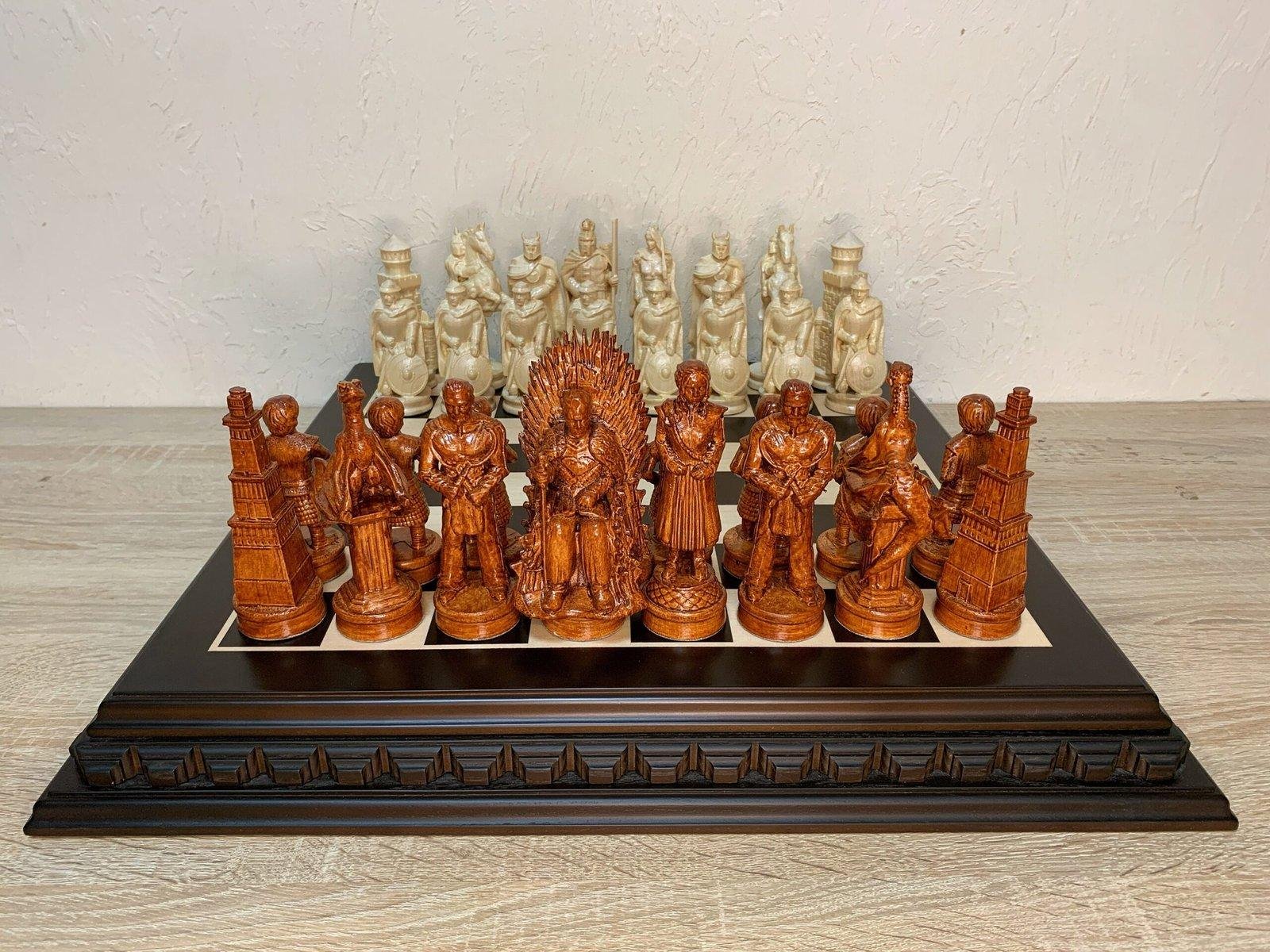 Wooden Chess set: Classic Chess Board + pieces “Game of Thrones”/ “Knights”