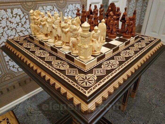 DESIGN: the chess board is decorated with beads; 16 chess pieces are made in the form of Knights and 16 pieces – characters from the series “Game of Thrones”; exclusively designed by our “Elen Elite” craftsmen.