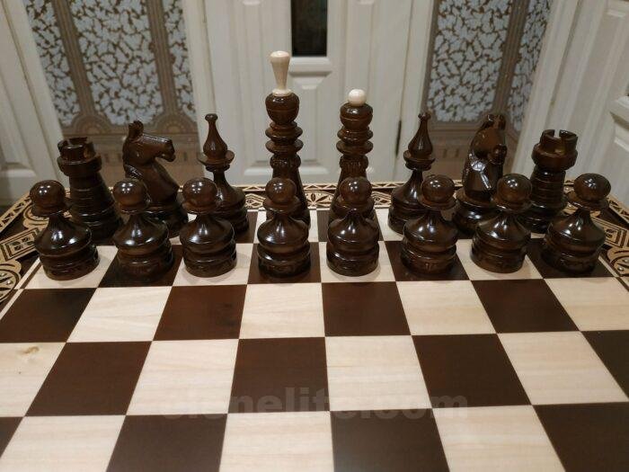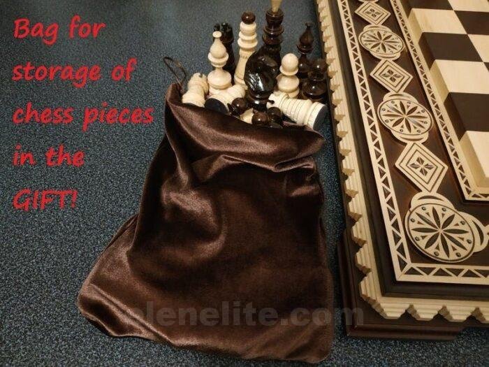 DESIGN: the chess board is decorated with beads; the chess pieces are made in classic design; exclusively designed by our “Elen Elite” craftsmen.