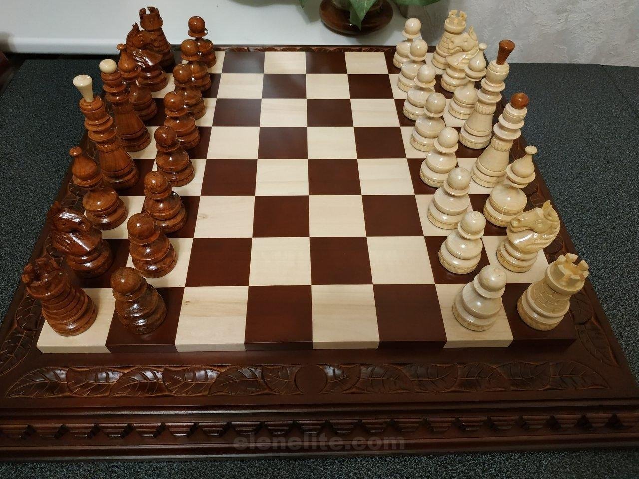 DESIGN: the chess board is decorated with hand carving, the chess pieces are made in a classic design; exclusively designed by our “Elen Elite” craftsmen.