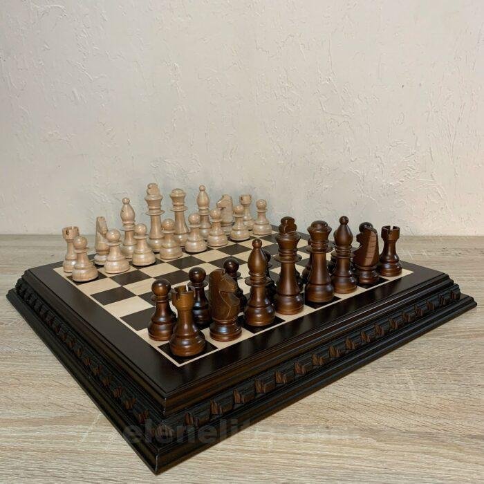 The chess set is made in a classic style and is completely handmade. The chess board is made of natural ash, has a dark brown color and a smooth, high-quality surface. The pieces are made of maple, also made in a classic style. Natural materials and discreet design emphasize its practicality and durability.