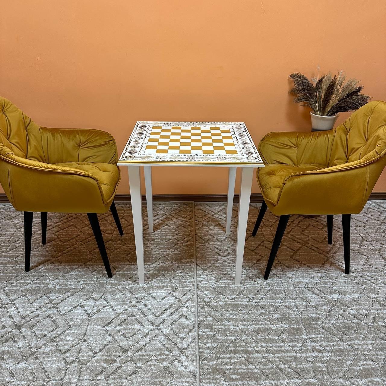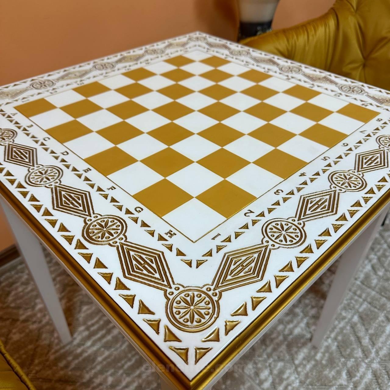 Wooden Chess Table “Ivory & Gold”