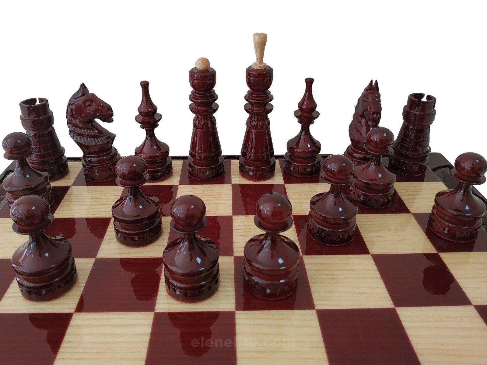 Diameter of the base of chess pieces – 1,29 / 1,29 inches (3,3 / 3,3cm)