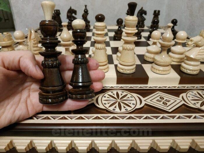 DESIGN: the set is made in a classic design; the chess board is decorated with beads; exclusively designed by our “Elen Elite” craftsmen.