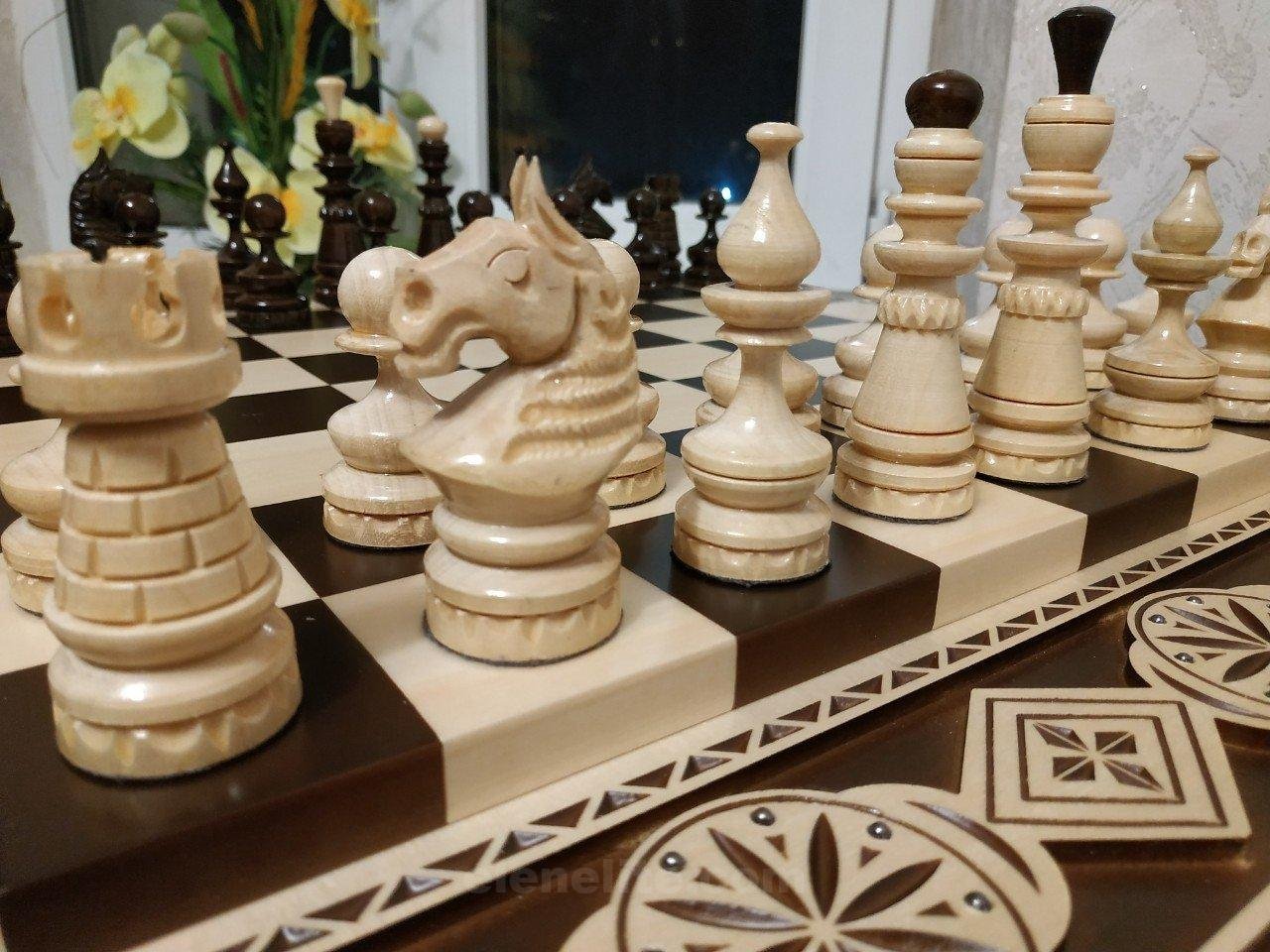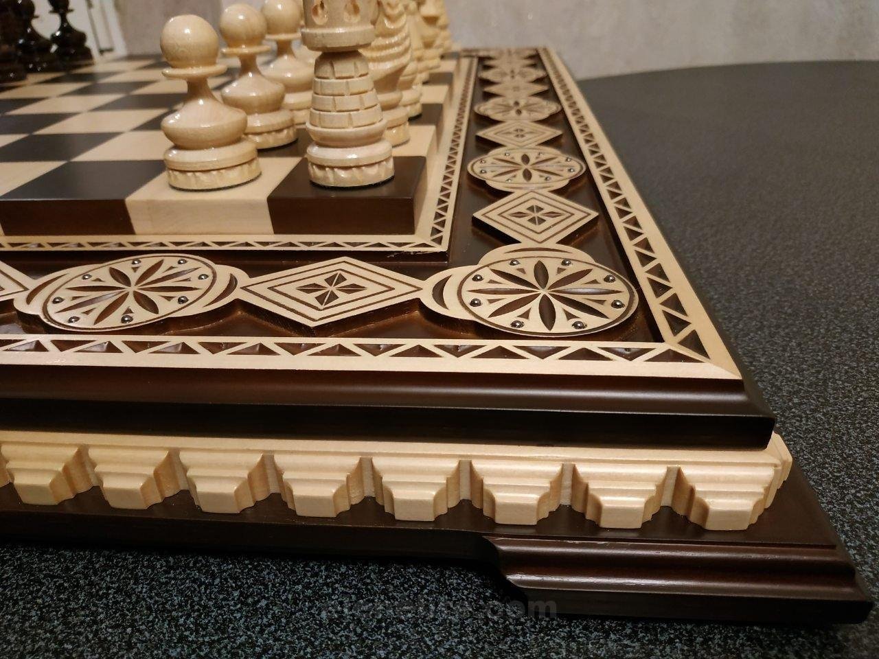 The chess pieces are made of maple in a classic design, providing a comfortable game and a harmonious combination with the overall aesthetics of the set.