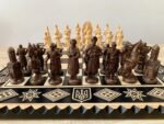This collectible chess set combines national symbols and artistic detailing of the pieces. The board, made of ash, is handcarved with elements of Ukrainian culture: the eight-pointed star of life – a symbol of harmony and spiritual balance, and the coat of arms of Ukraine – the Trident. The set includes 32 unique pieces: 16 chess pieces – heroes of the legendary series Game of Thrones and 16 pieces made in the image of Ukrainian Cossacks.
