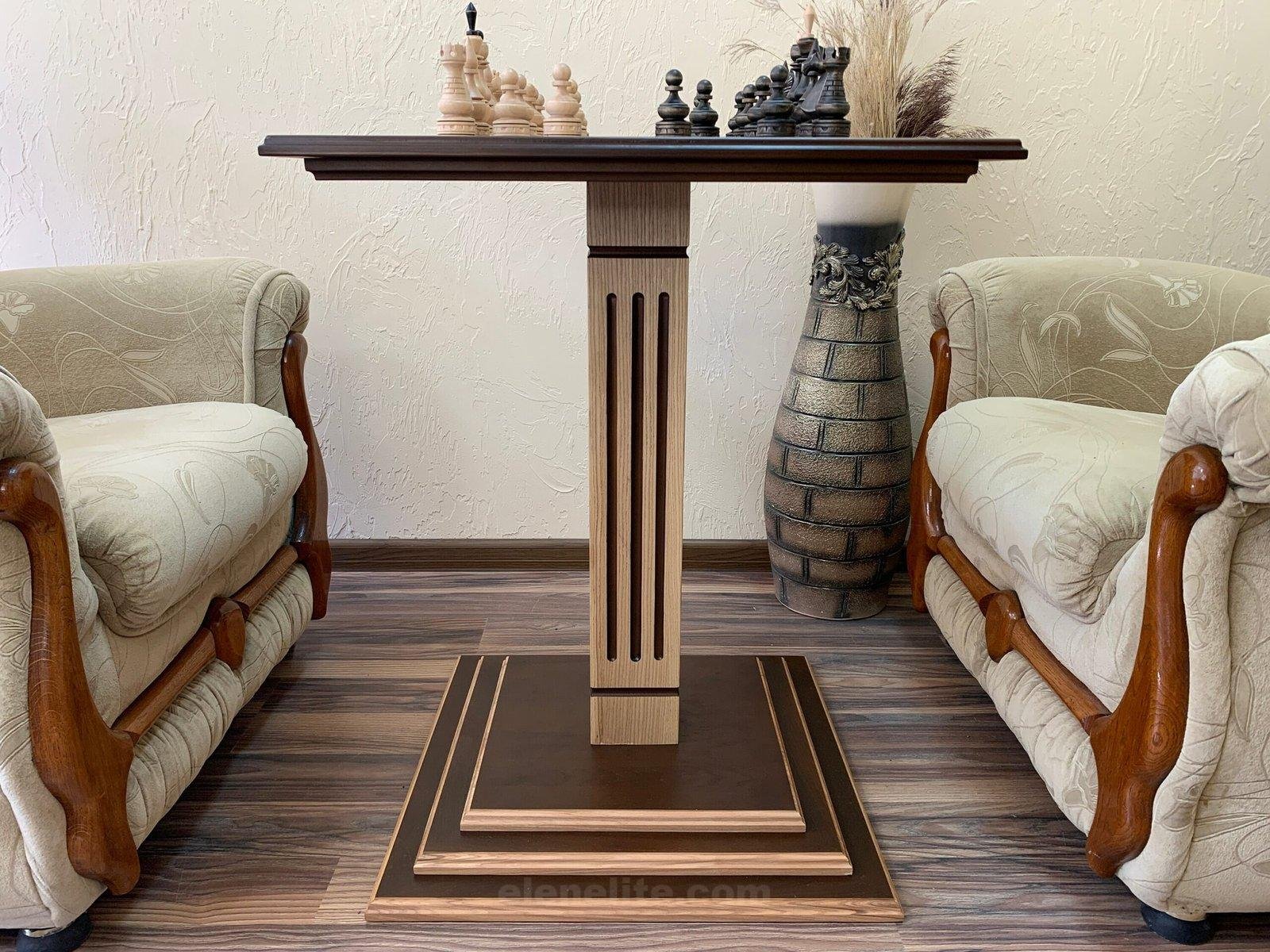 Wooden Chess Set: Chess Table “Waves of Aspiration” + chess pieces “Elite”