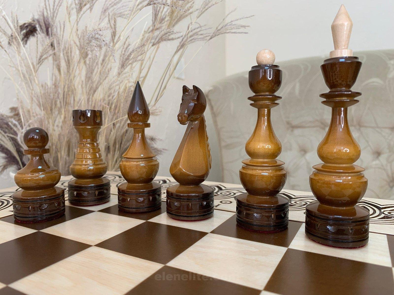 COLOR: chess table in light brown, beige; chess pieces in brown ombre, beige with super glossy finish