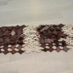 Handcrafted wooden curtain with a pattern of diamonds and rings – a natural decor for the home, rooms and terraces.