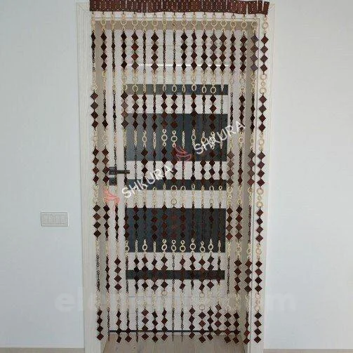 This stylish, handcrafted curtain is made of natural wood and decorated with a unique pattern of diamonds and rings. It’s perfect for use as a door curtain, a decorative screen, or as a window or patio curtain. It’s perfect for boho or eco-style interiors.