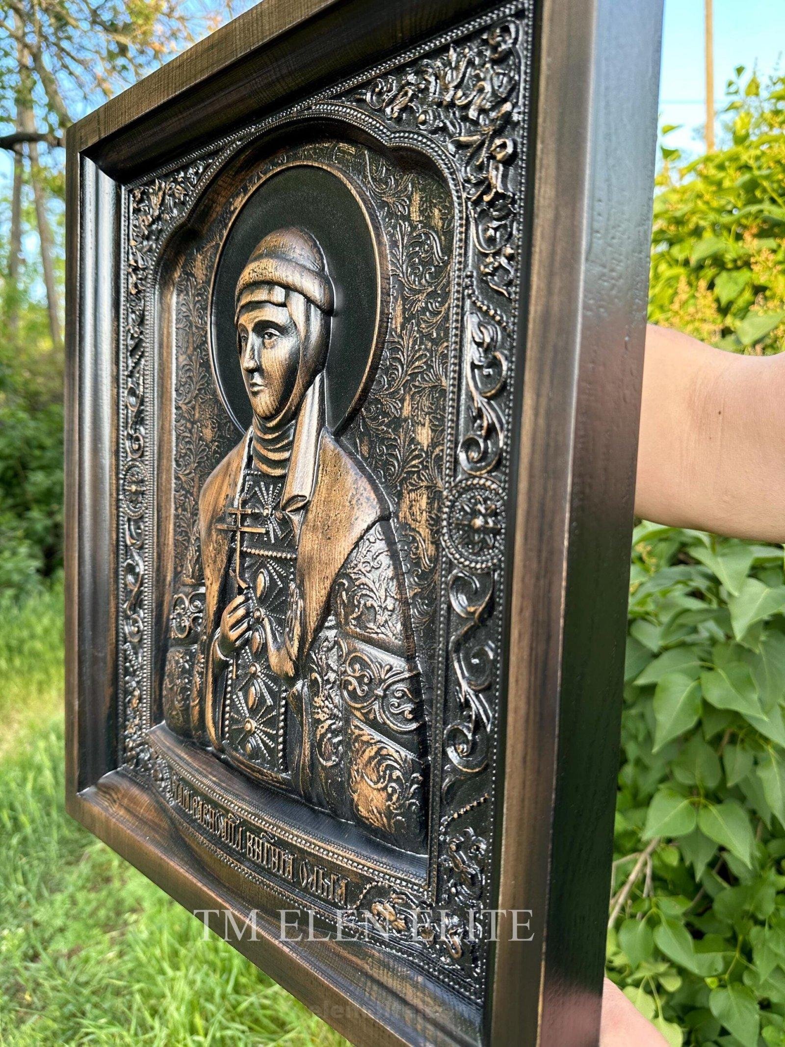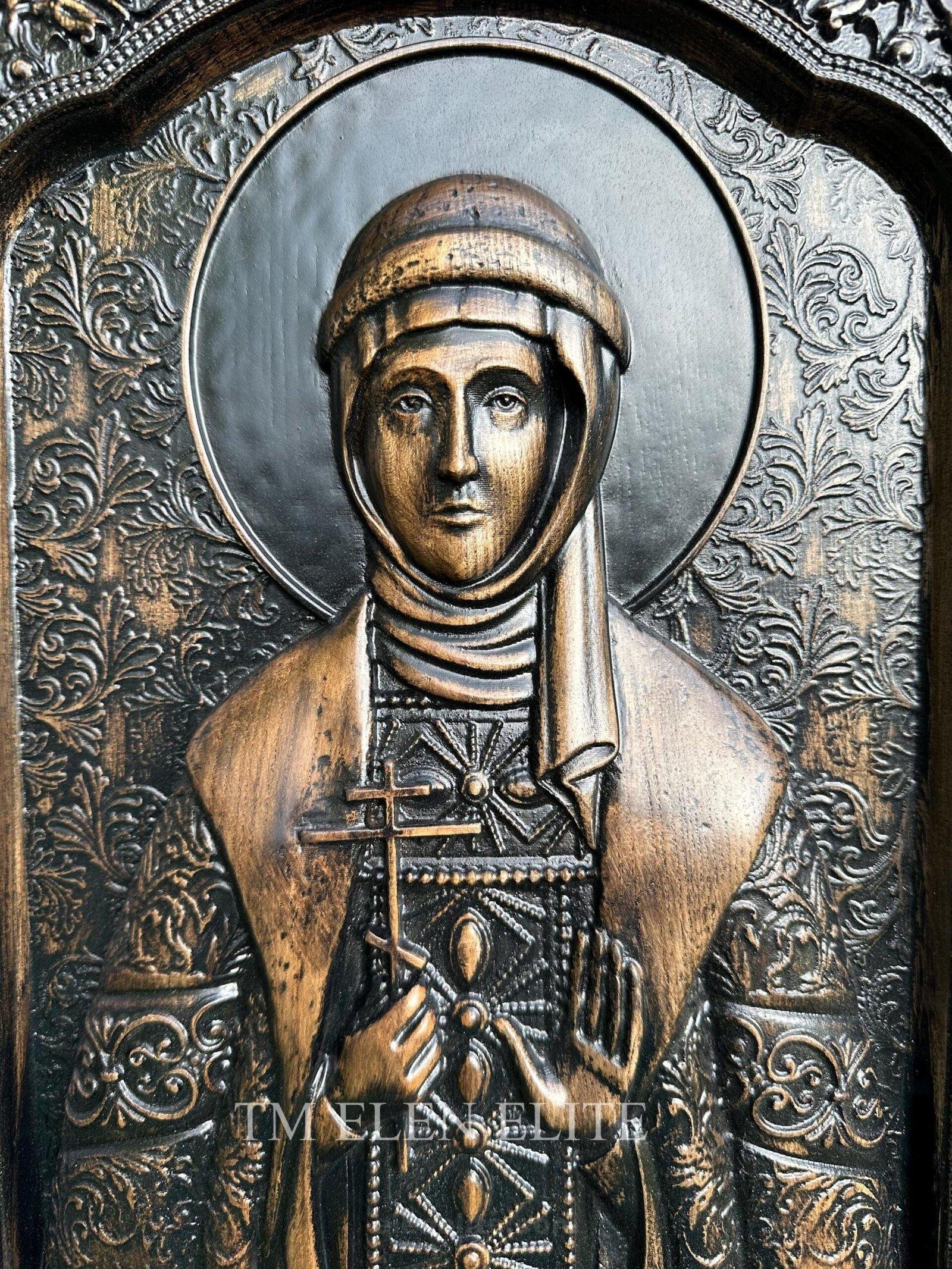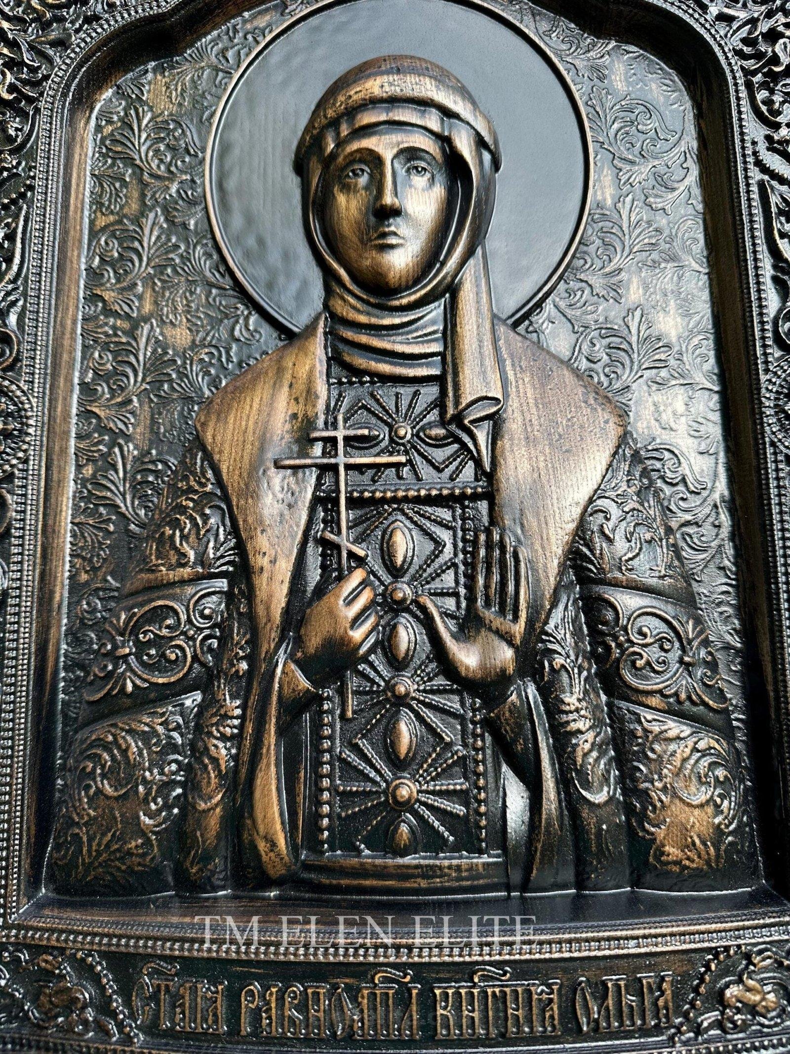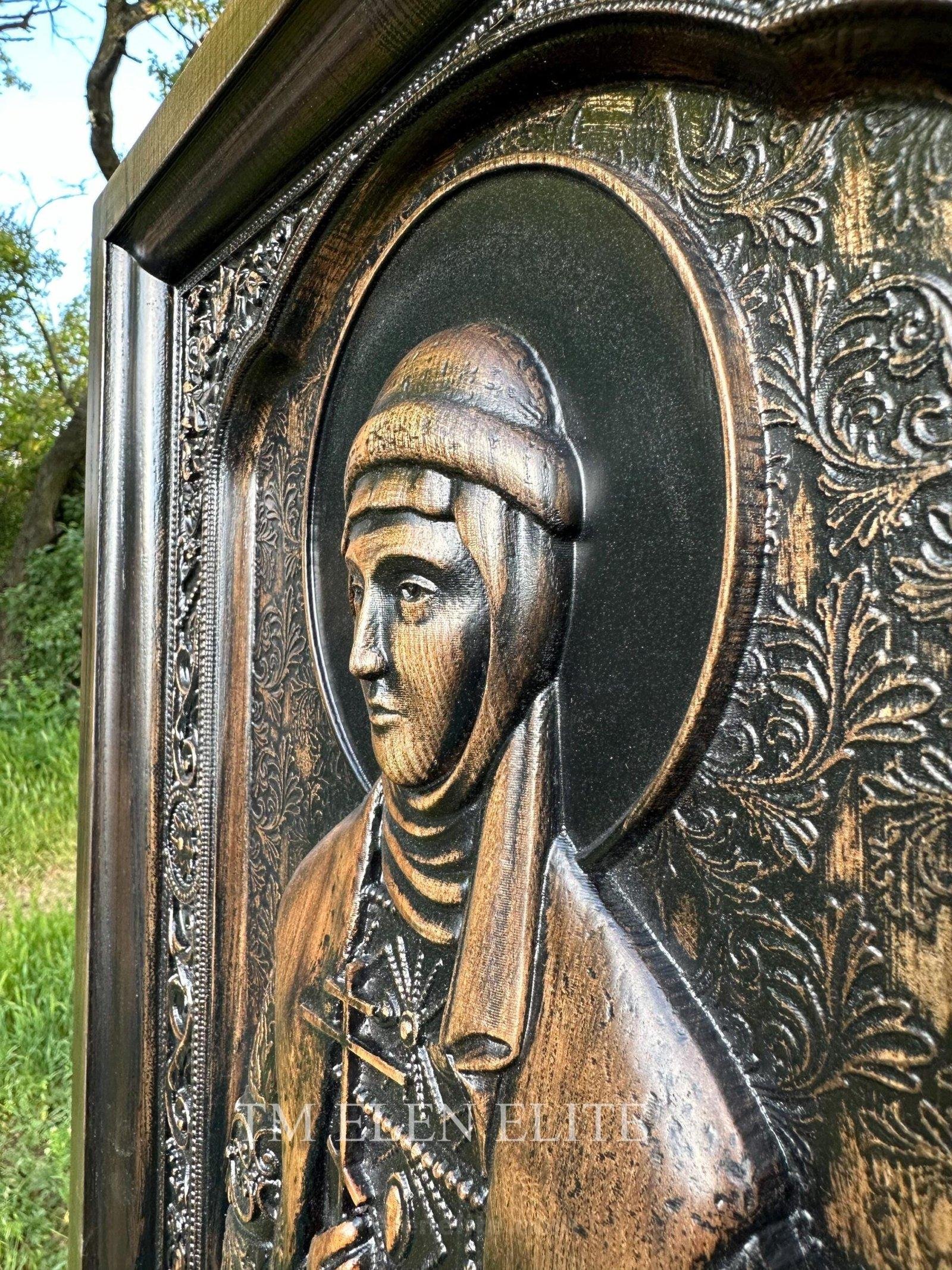 Introducing our stunning wooden decor piece – "The saint Olga of Kyiv" carved wall panel.