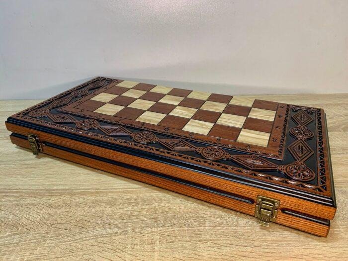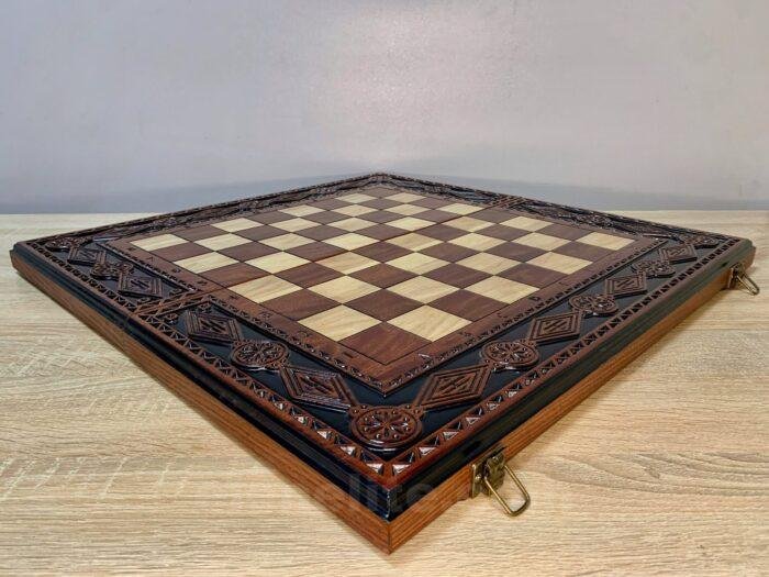 DESIGN: folding board with velour storage, carved patterns and markings; exclusively designed by our “Elen Elite” craftsmen.