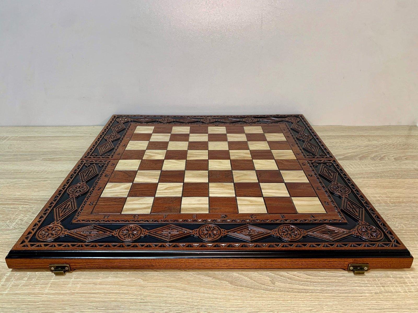 Folding Сhess Board with carved patterns, velvet storage and clear markings – elegant and practical