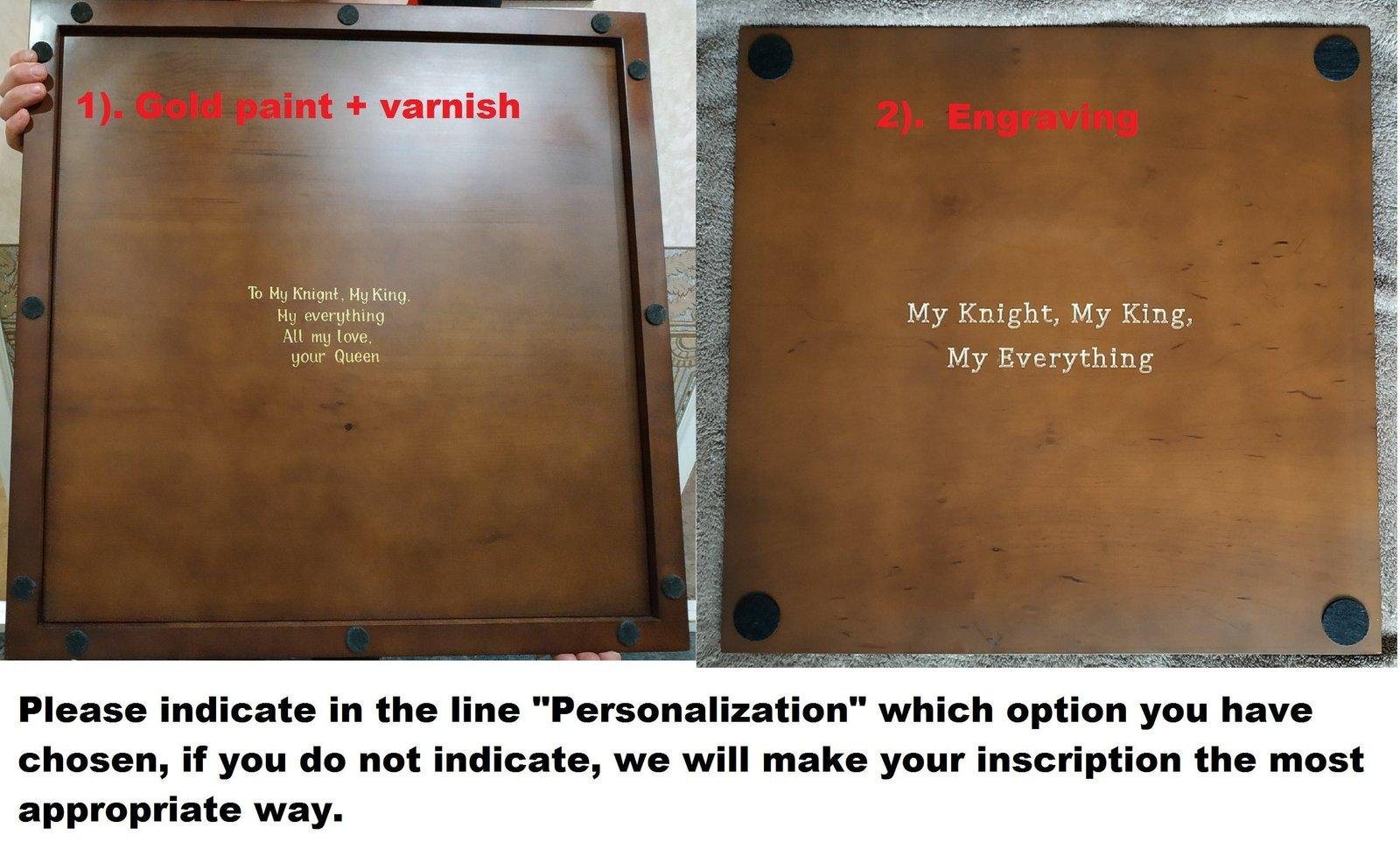 We value your taste and strive to create products that truly bring joy. That’s why we offer the option to change ANY CHARACTERISTIC of your chess product to match your preferences.