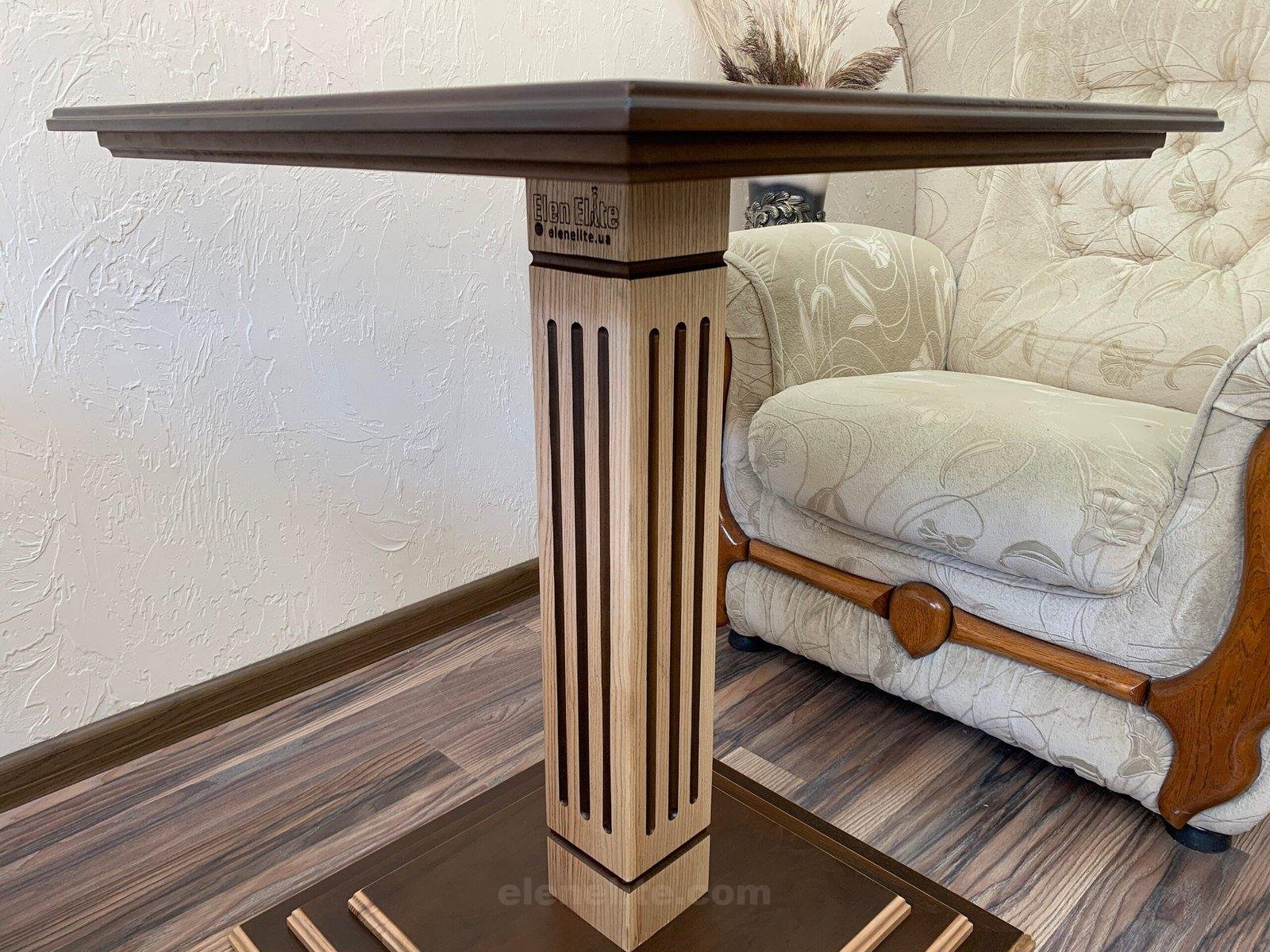 An elegant chess table made of solid ash is a combination of strength and sophisticated design. The structure is made on one stable leg, which gives the model a laconic look. The table is painted in noble brown-beige tones, which harmoniously emphasize the natural structure of the wood. The playing field is decorated with fine carving and neat markings, creating ideal conditions for the game and making the product an effective element of the interior.
