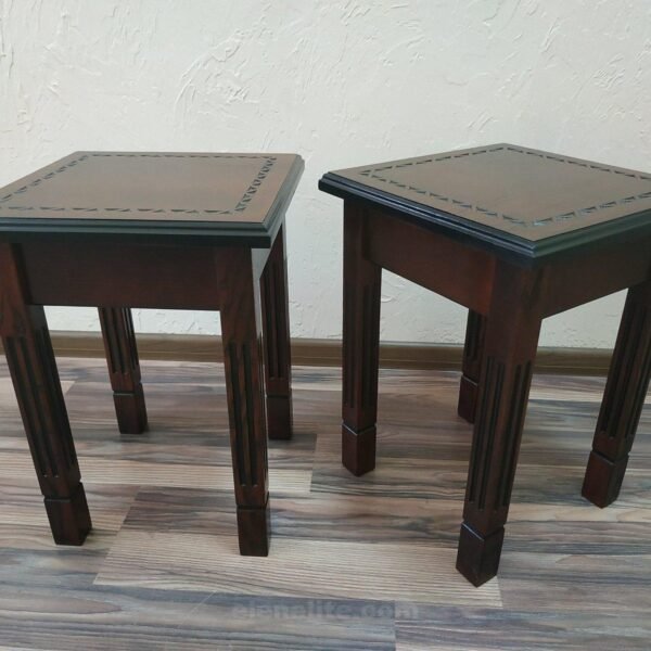 PAIR of Wooden chairs / stools, wood-carved stools with beautiful detailing will very well complement the interior of your home.
