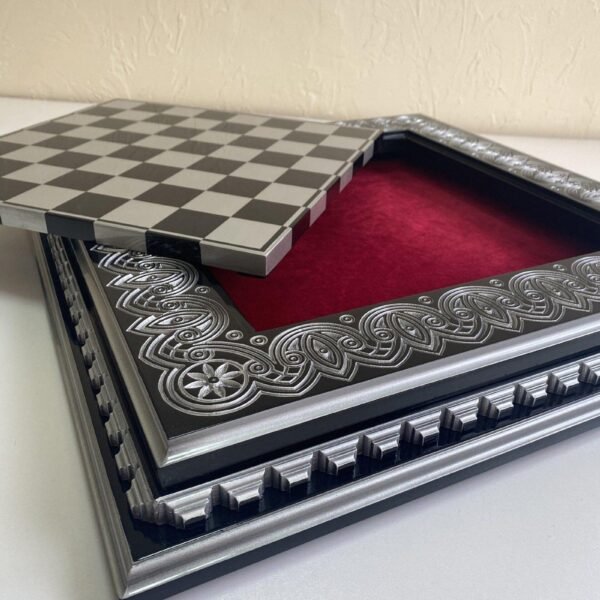 Wooden Chess board "Black & Silver" Removable Playfield, Storage for pieces