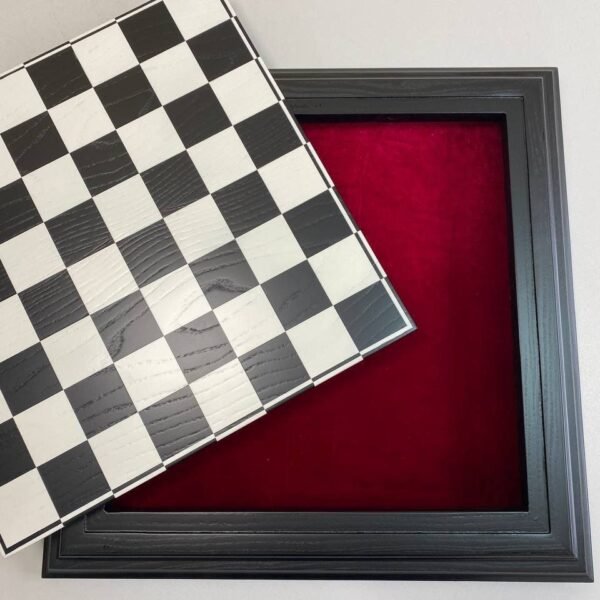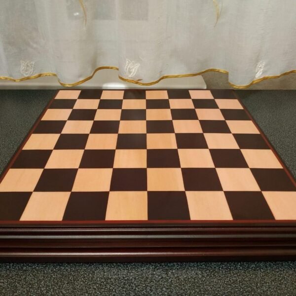 Classic handcrafted ash chess board with dark burgundy edging - a combination of severity and elegance.