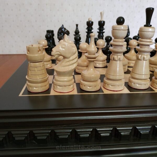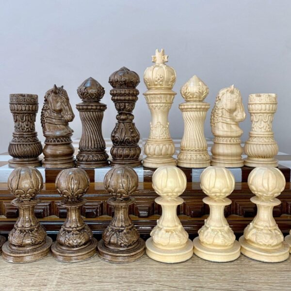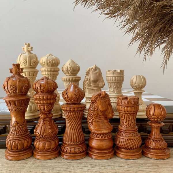 Wooden Chess pieces “Classic” slavic style with ornamental detailing