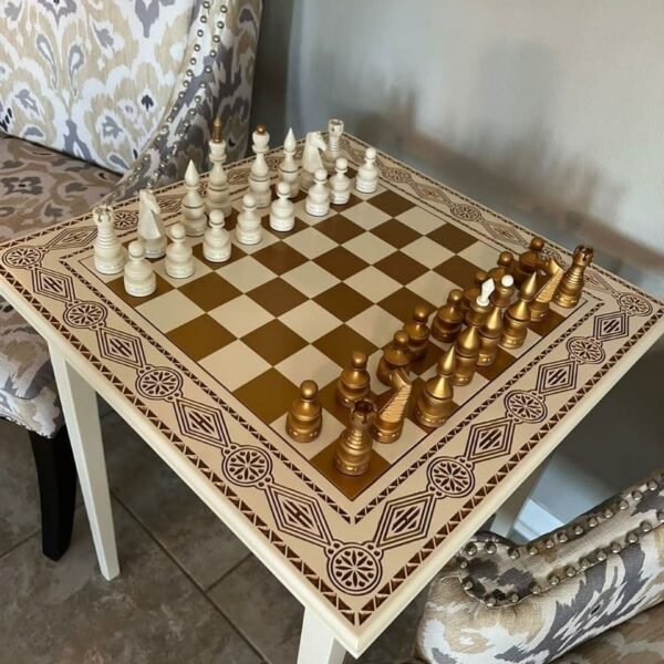 Wooden Chess set “Ivory & Gold”: Chess Table + chess pieces “Elite”