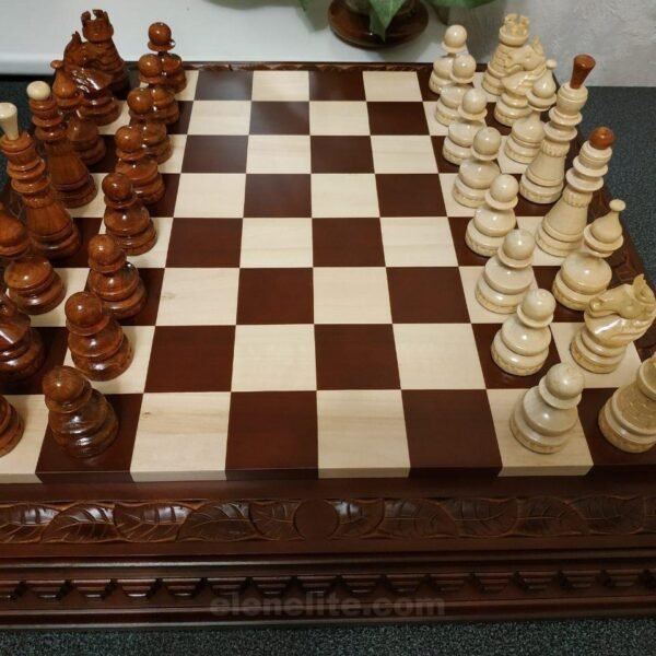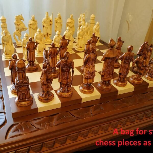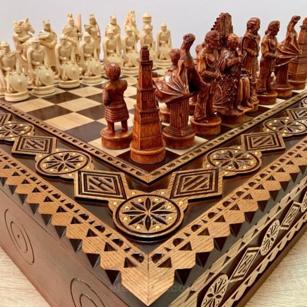Wooden Chess Set: Chess Board “Leaves” with Storage + chess pieces “Knights” + “Cossacks”