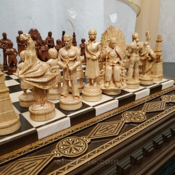 Wooden Chess set: Chess Board “Waves of Aspiration” + chess pieces “Game of Thrones”