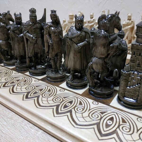 Wooden Chess Set: Board "Light in the Dark " + chess pieces “Knights”