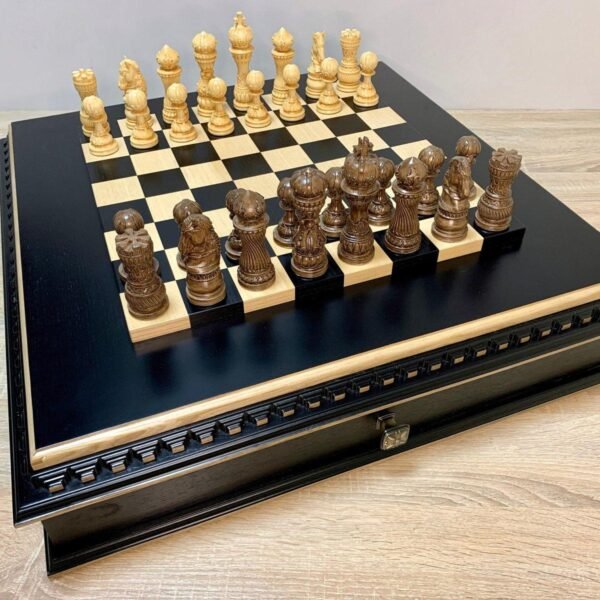 Wooden Chess Set: Board with 2 drawers for storing + pieces “Classic Deluxe”