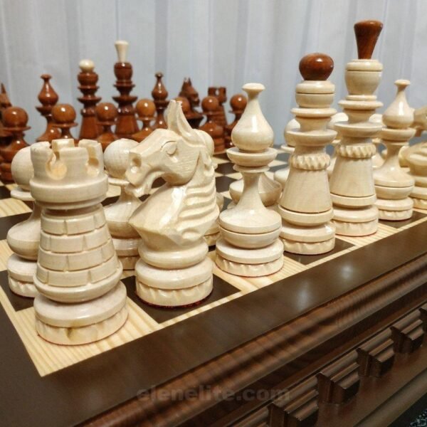 Wooden Chess set: Classic Chess Board + Chess Pieces “Knights” & “Cossacks”