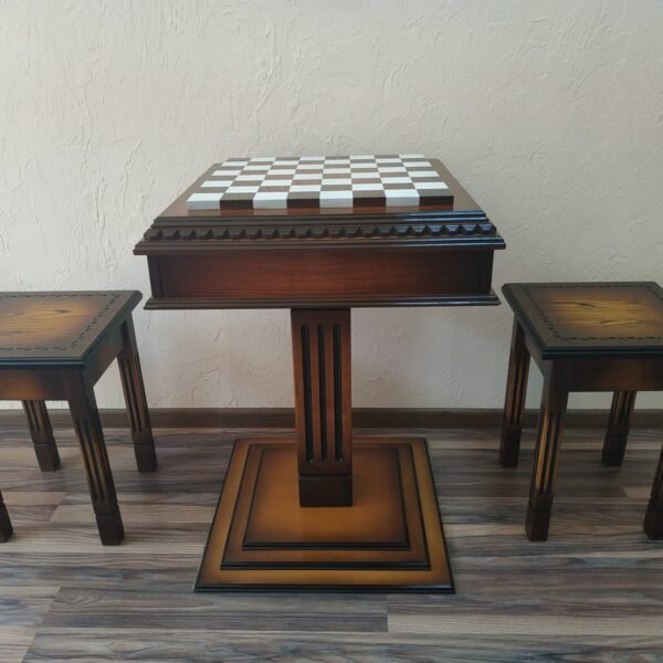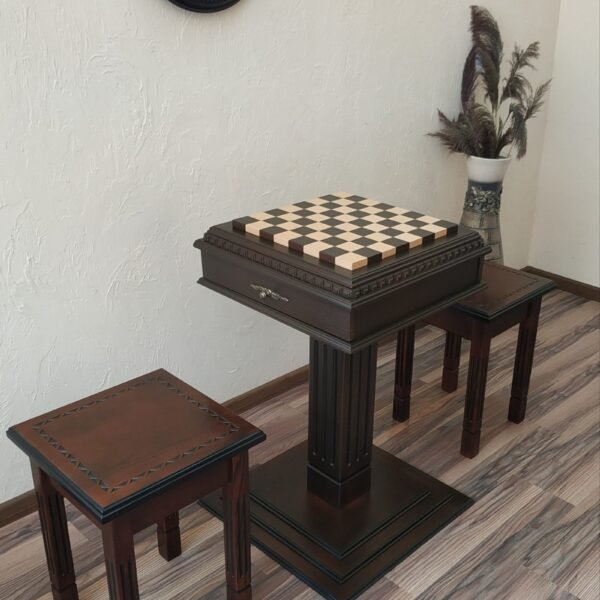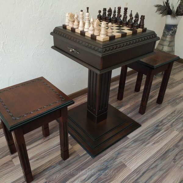 Wooden Chess set: Chess table "Royal Classic" with Drawers + 2 stools