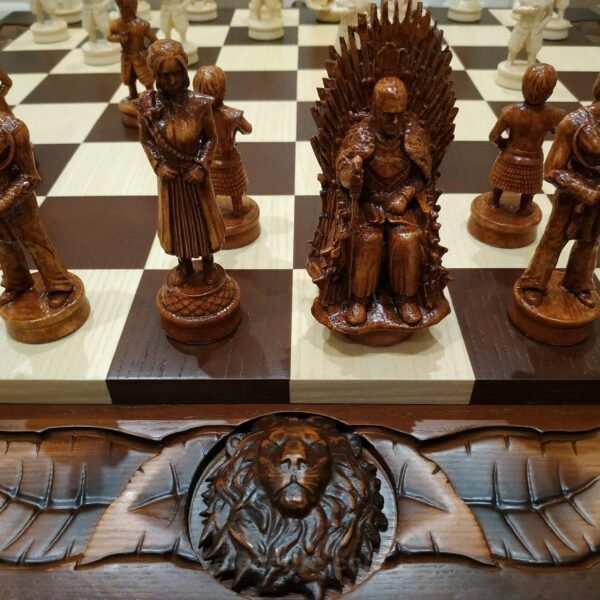 Wooden Chess Set: Table/Board "Lion Victory"chess pieces woodcarving Battle of Thrones exclusive family game handmade Christmas gift for him
