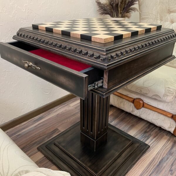 Wooden Chess Table “Black stone” with drawers for chess pieces
