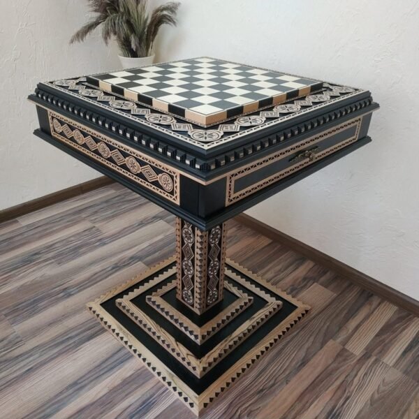 Wooden Chess Table “Black stone” with drawers for chess pieces