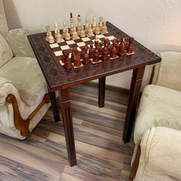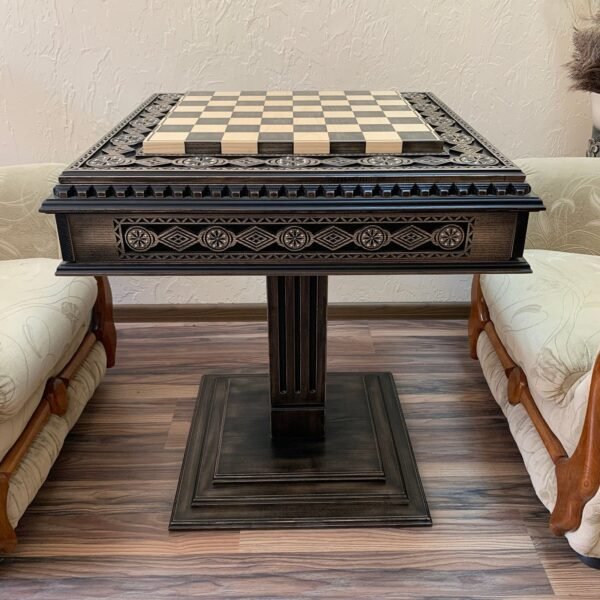 An elegant four-legged table crafted from premium ash. The game board is exquisitely carved and beaded, making it not only comfortable but also a decorative element.
