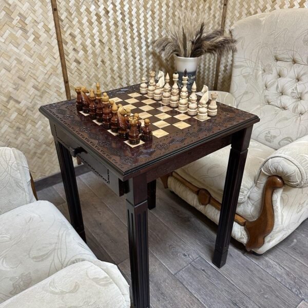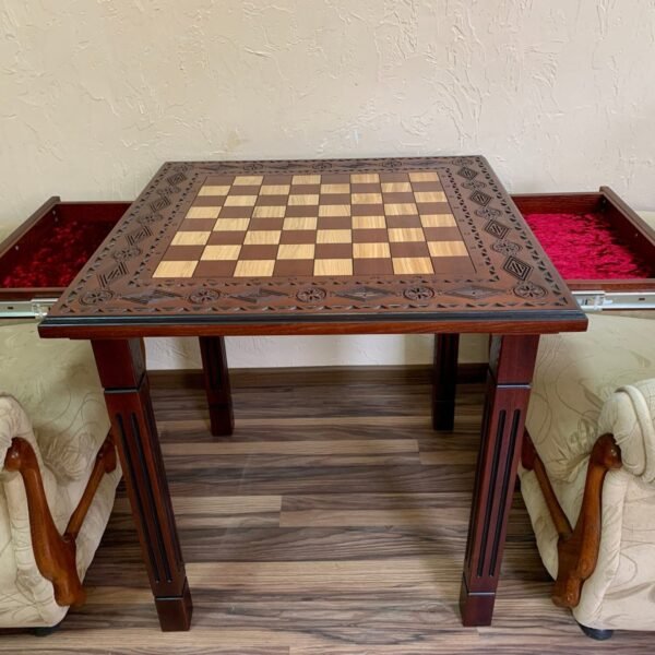 Wooden Chess Table “Bright Victory” with Drawers and Cells for chess pieces