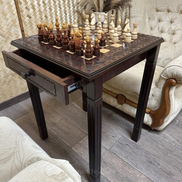 Wooden Chess Table “Bright Victory” with Drawers and Cells for chess pieces