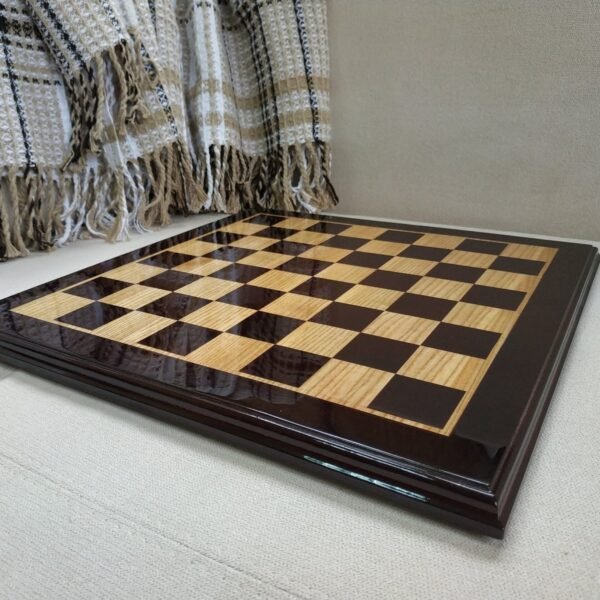 Classic Ash Chess board with a glossy finish and elegant brown colour - a combination of style and quality for every game.